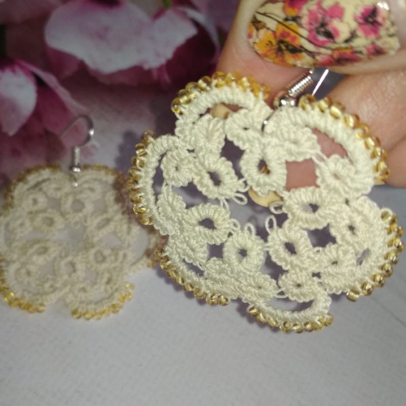 Тендітна сніжинка, від якої віє теплом, зроблена у техніці плетіння фріволіте.