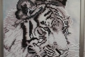 Це картина, від якої віє спокоєм, впевненістю та водночас теплом, незважаючи на холодну колірну гаму. Дивлячись на чорно-білого тигра, з'являється відчуття наближення зими, а з ним – і тепла рідної оселі, тому ця картина стане чудовим оберегом домашнього затишку.