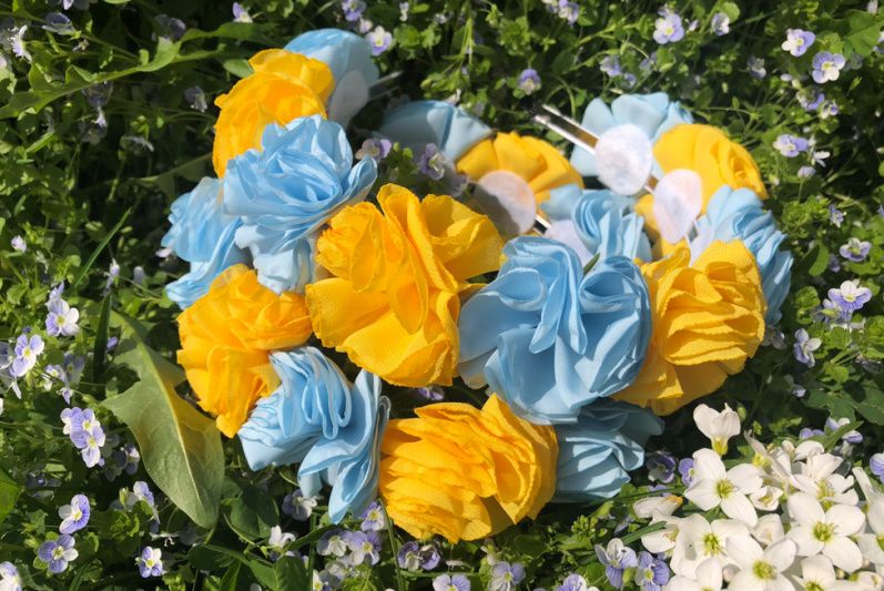 Обруч для волосся. Квіти ручної роботи виготовлені із тканини