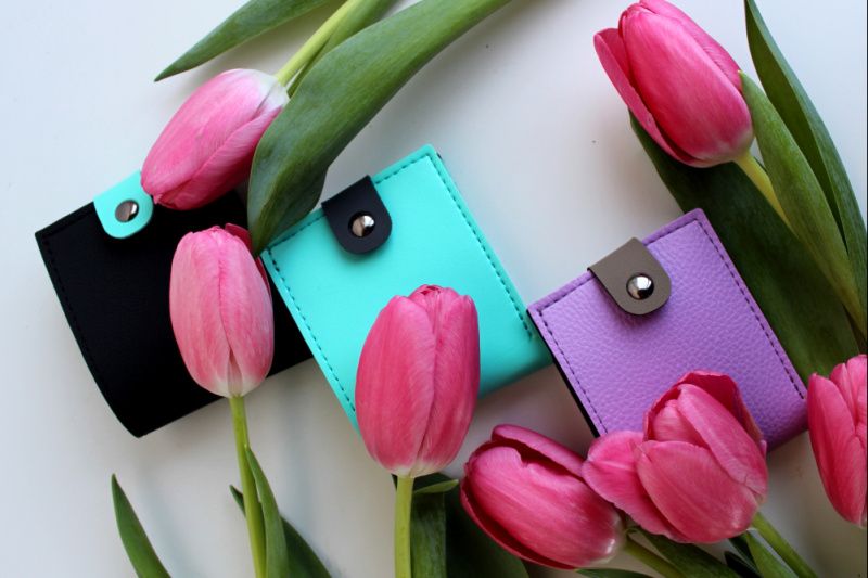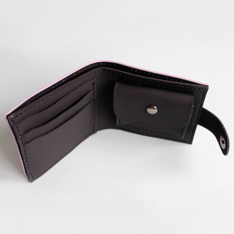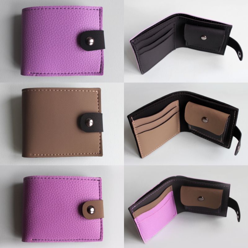 Гаманець-половинка в різних кольорових поєднаннях. Складається з двох половинок (умовних) і розкривається за принципом книжки. Розмір 11,5х9 см. Вміщає одне відділення для купюр та кишенькою для копійок.