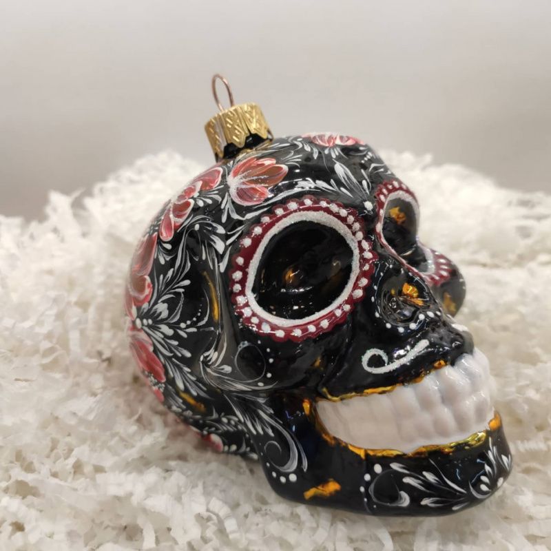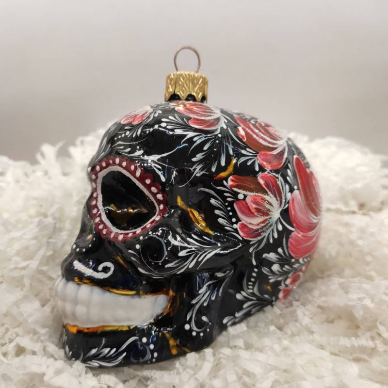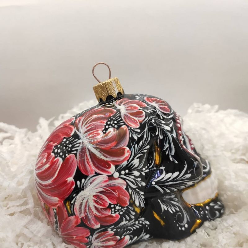 Скляний череп на ялинку діаметром до 100мм Ручна робота Череп малюється на замовлення в одному екземплярі. Нестандартна форма в обмеженій кількості, колекційна річ
