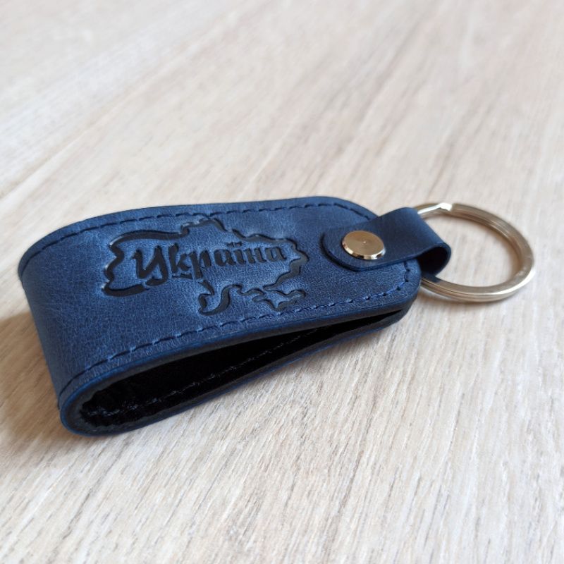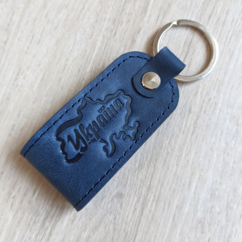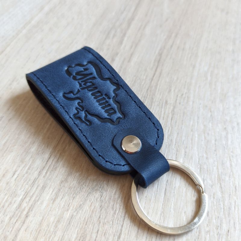 Особливості: сувеніри чоловічі – стильні чоловічі брелоки для ключів до 6 см – брелок для ключів Україна – натуральна італійська шкіра. Брелок для ключів зі шкіряною підкладкою та авторським тисненням – карта України. Брелоки на ключі Україна мають кільце для ключів та карабін. Брелок на ключі Україна зі шкіри виконаний у синій гамі