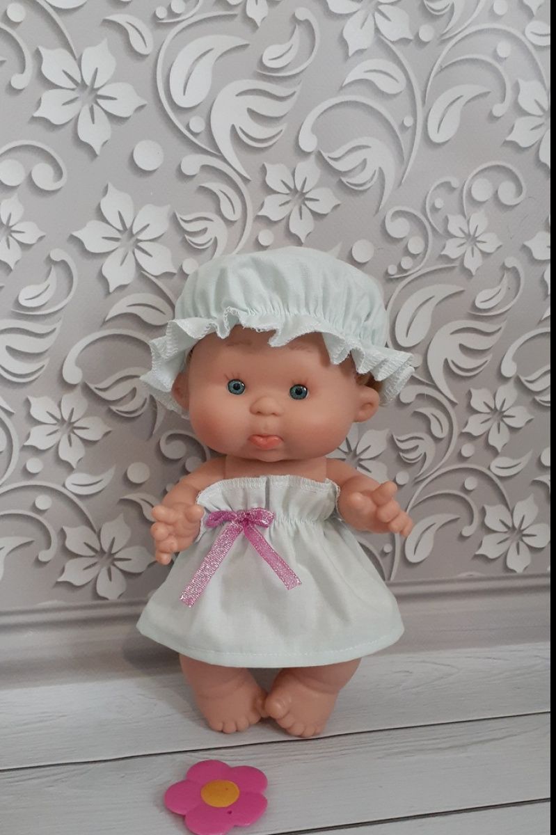Одяг для пупса Нінес доніл 26 см. Сарафан і панамка