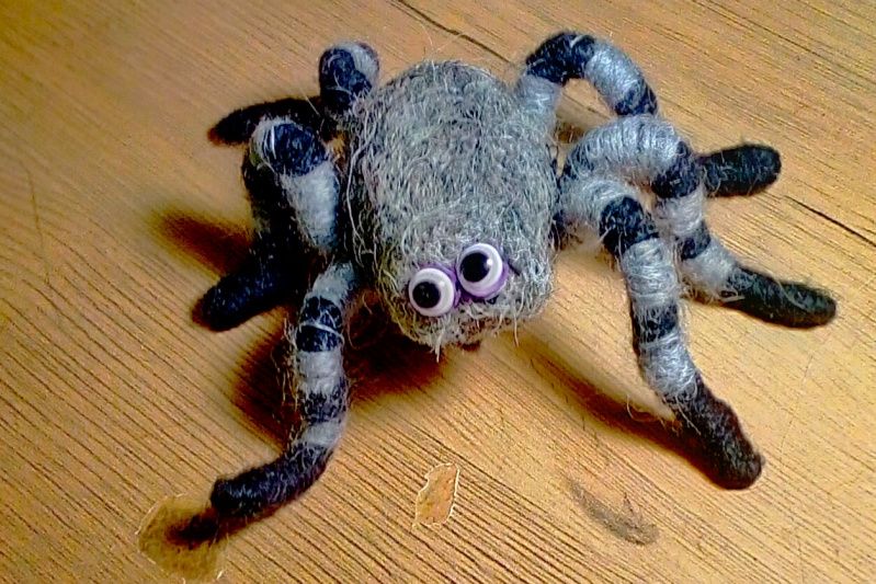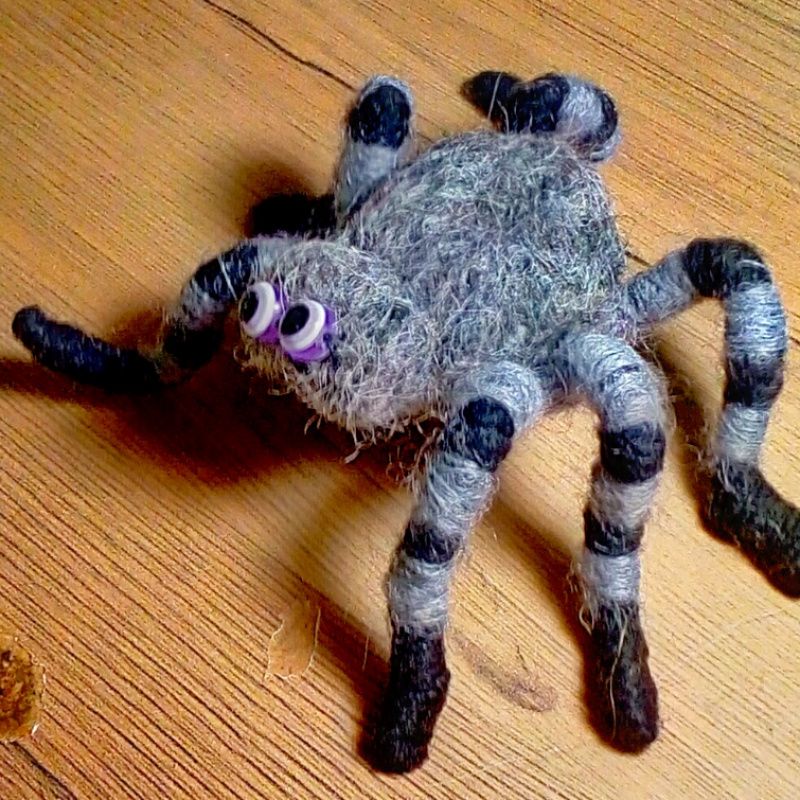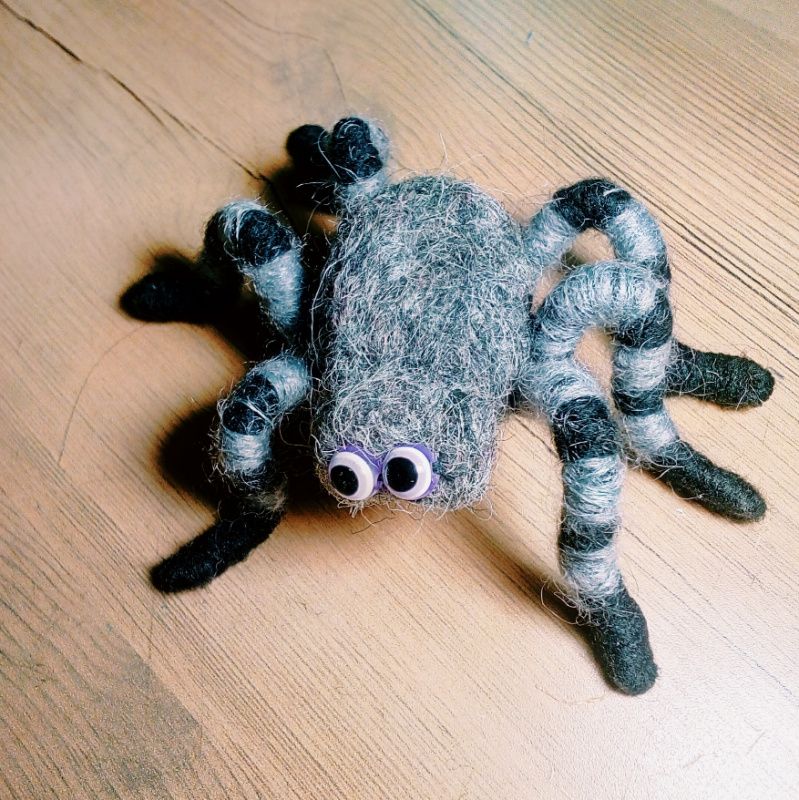Паук, валяный из овечьей шерсти. Паука можно прикрепить на одежду, оформить интерьер на праздник,