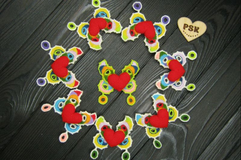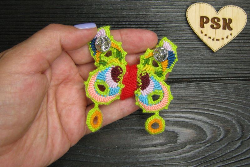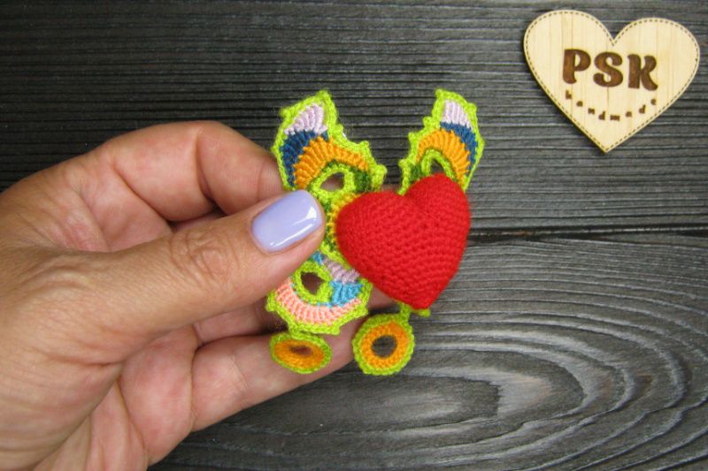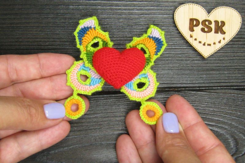 В’язана гачком брошка серцекрилець, менший варіант.