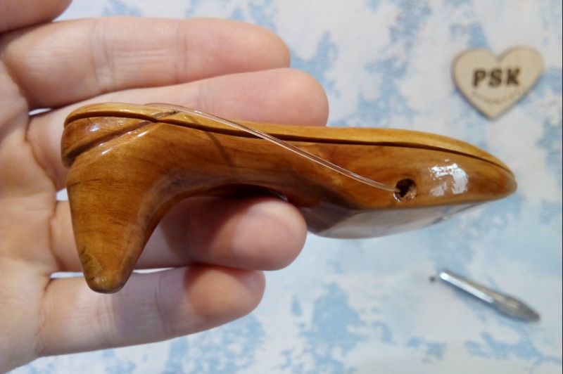 Різьблений дерев'яний футляр для варгану ручної роботи у формі жіночого взуття. Виконується індивідуально за габаритами кожного конкретного інструменту. Ви можете дати нам точні розміри вже наявного інструменту або замовити новий варган з доставкою нам. Ми виготовимо під нього футляр і все разом надішлемо Вам. Надалі ми плануємо робити футляри з малюнками, випаленими візерунками та вкладками зі шкіри. Відмінний подарунок поціновувачам варгану за ціною виробника! ★ Опис: габарити: індивідуальні; • цільне дерево, найчастіше ясен; • зручний та довговічний замок із прозорої еластичної волосіні; • лак, ручне полірування до дзеркального блиску; • надійний захист варгану з усіх боків; • зносостійкі, довговічні матеріали; • широка персоналізація за окрему плату (випалювання або малювання слів, символів та візерунків, виконання в іншому дереві тощо); • максимум українських складових; • знижки та бонуси при замовленнях більше одного та на наступні покупки (про це – в особистому листуванні); • міцність виробу дозволяє інтенсивне використання. Різьблений футляр для варгану PSK - незабутній подарунок Вам і дорогому Вам поціновувачу цього славного інструменту! Замовляйте зараз! ❤