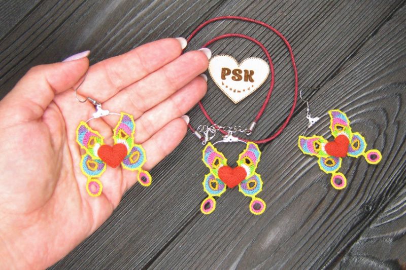 Серцекрильці в'язані гачком сережки і підвіска набір. М'які серця з крилами фантазійного метелика. Авторська біжутерія ручної роботи, повна позитивного змісту. Унікальні прикраси за ціною виробника! ★ Опис: • розміри: 4х5х1 см, вага ~ 10 г (все); • поліефірна пряжа, стійка до линяння та вигоряння на світлі; • рухливі крила; міцне складання; • гіпоалергенна медична сталь; • гіпоалергенний наповнювач холофайбер; • допустиме прання на делікатних режимах; • широка персоналізація за окрему плату (виконання в інших кольорах, інші швензи, основи та ін.); • знижки та бонуси при замовленнях більше одного та на наступні товари. 14 днів для повернення чи обміну речі, що не підійде. За відсутності пошкоджень, персоналізації та рахунок клієнта. Серцекрильці PSK - незабутній подарунок Вам та дорогій Вам людині! Купуйте зараз! ❤