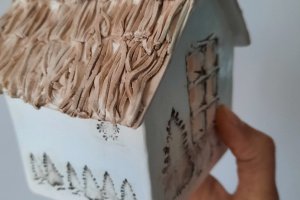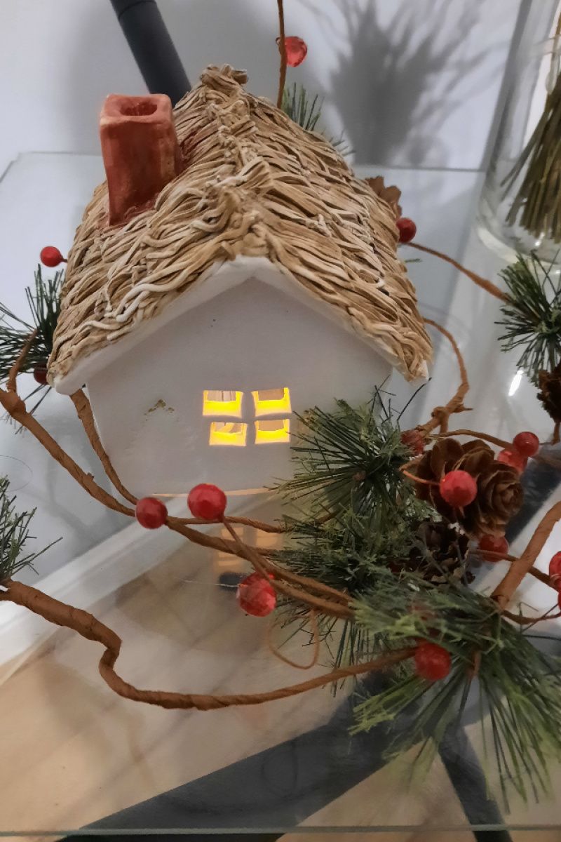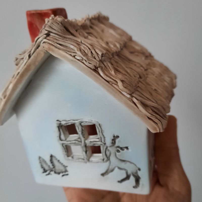 Хатинка керамічна. Підсвічується свічкою. Така підсвічена хатинка чудова прикраса для святкового столу.