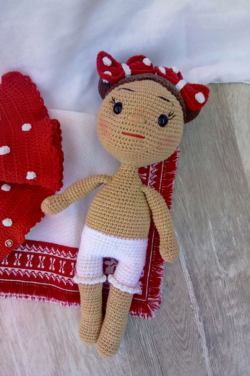 Лялечка ігрова. Платтячко знімається. Голова зафіксована проволочним каркасом. Очки на безпечному кріплкнні.