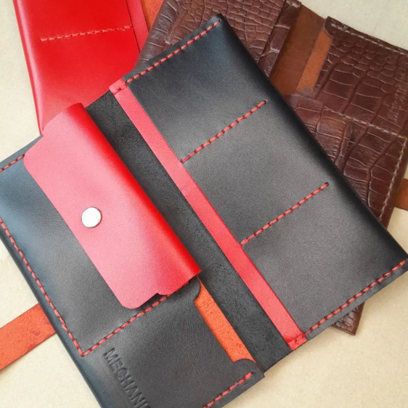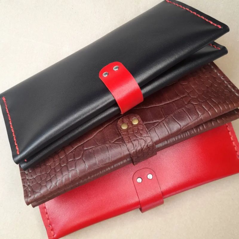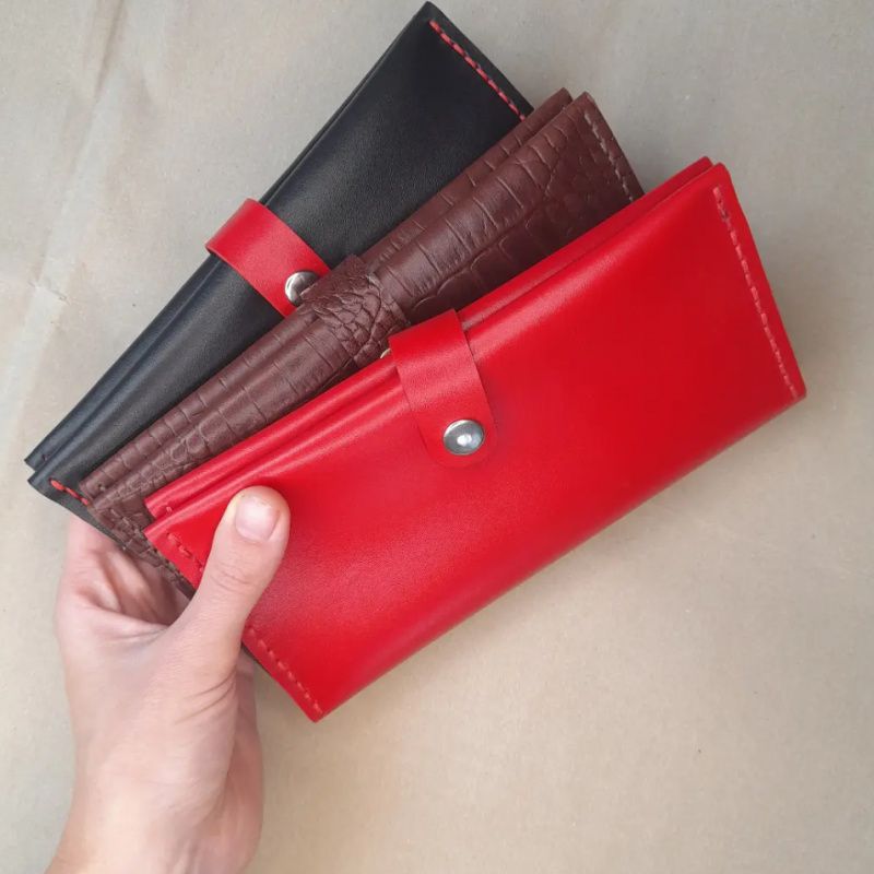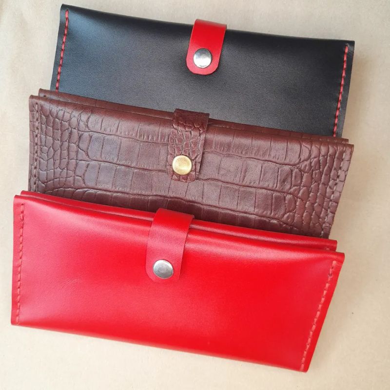 Шкіряний жіночий гаманець ручної роботи. Всередині: 4 відділи для карт, велика монетниця, два відліли для купюр Можемо зробити з таких кольорів шкіри: чорний, червоний, зелений crazy hors, марсала crazy hors, коньячний crazy hors, коньячний стисненням під рептилію