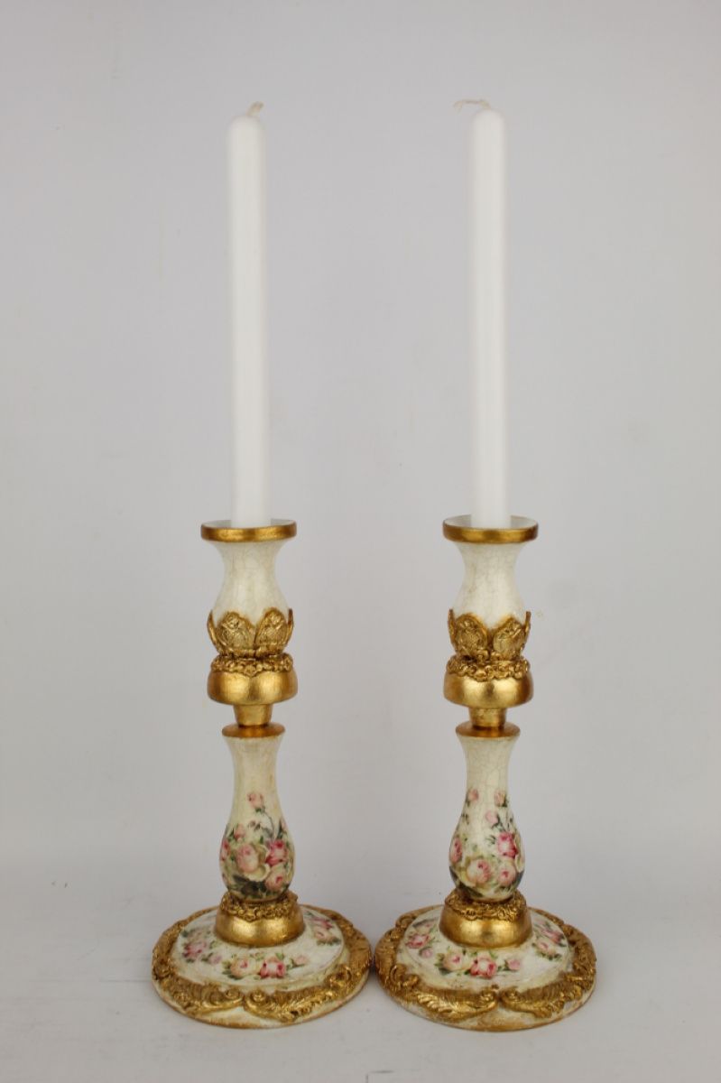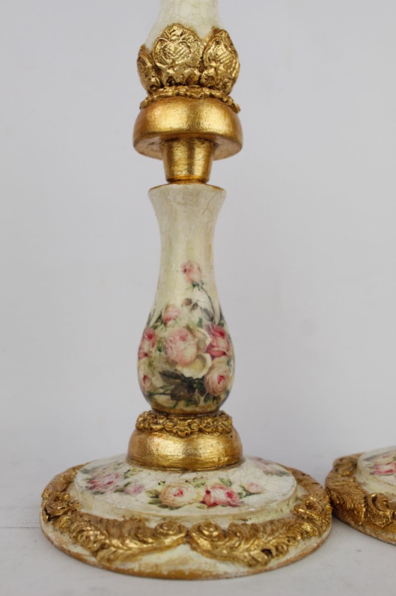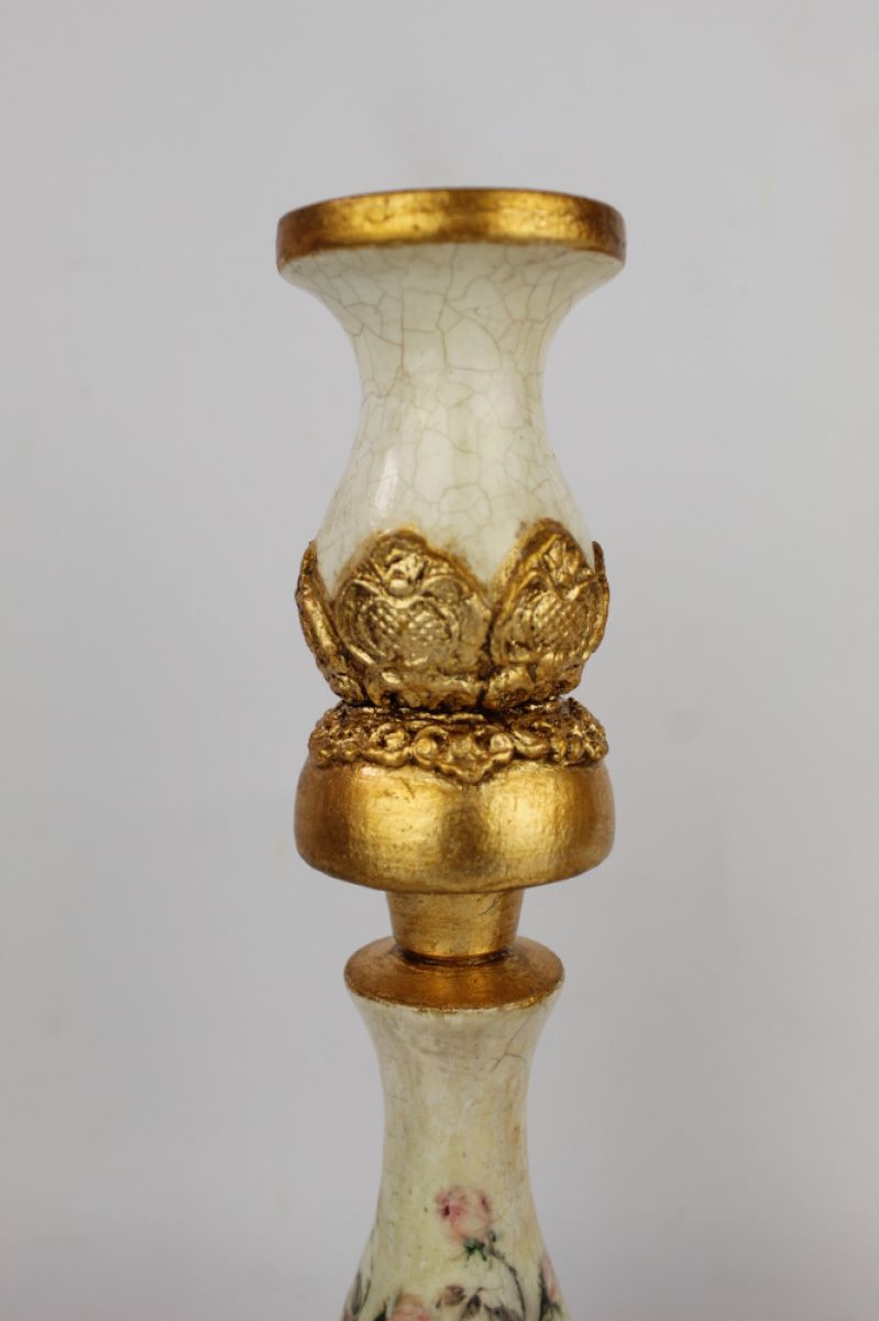 Декоративні підсвічники, ручної роботи, виконані із натурального дерева у техніці декупаж та кракелюр, з використанням акрилових фарб, лаку, ліпнини та оздоблені золотою поталлю.