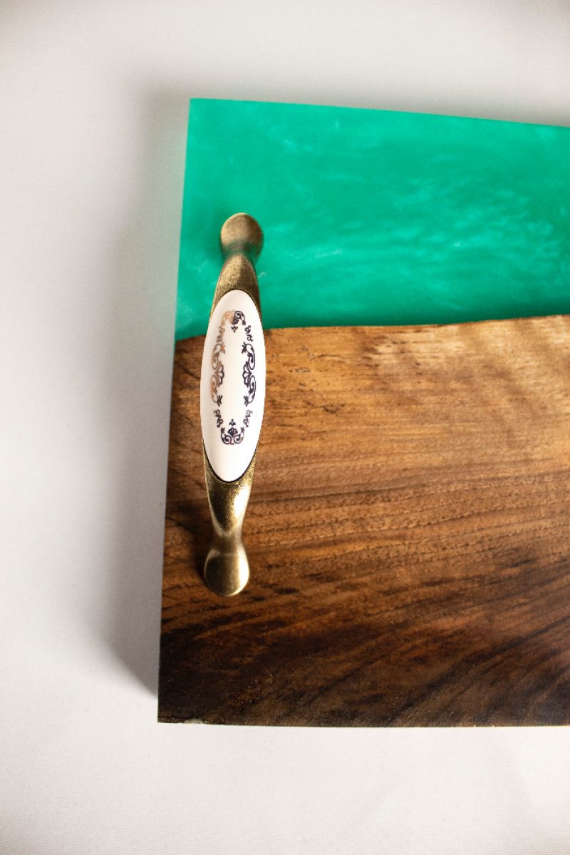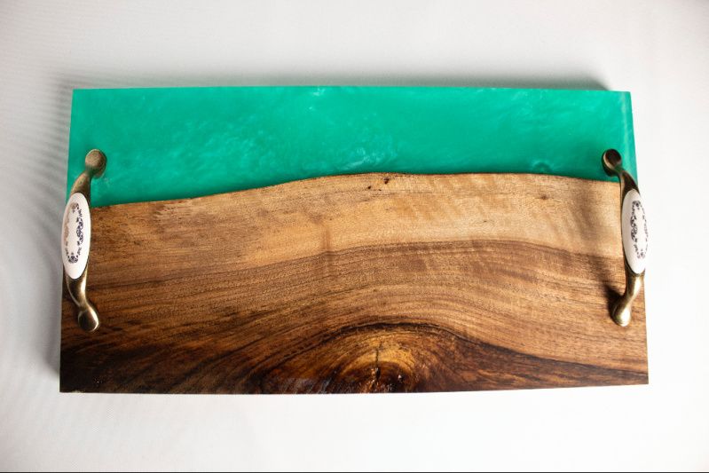 Кожна дощечка виготовляється вручну, спеціально для Вас, тому кінцева обробка дерев'яної підставки, відтінок кольору і малюнок епоксидної смоли, може варіюватися, залежно від кожної моделі. Ми не можемо гарантувати точний відтінок та текстуру дерева і епоксидної смоли.