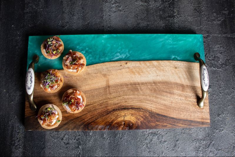 Декоративна дощечка Pride&Joy для сервірування із епоксидної смоли та натурального дерева (горіха). Вона стане чудовою прикрасою Вашої кухні та столу або неймовірним подарунком для близьких чи друзів.