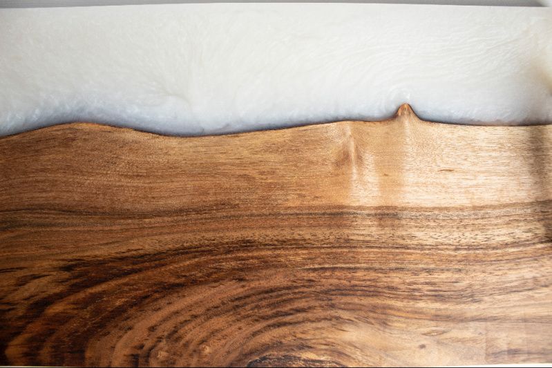 Кожна дощечка виготовляється вручну, спеціально для Вас, тому кінцева обробка дерев'яної підставки, відтінок кольору і малюнок епоксидної смоли, може варіюватися, залежно від кожної моделі. Ми не можемо гарантувати точний відтінок та текстуру дерева і епоксидної смоли.