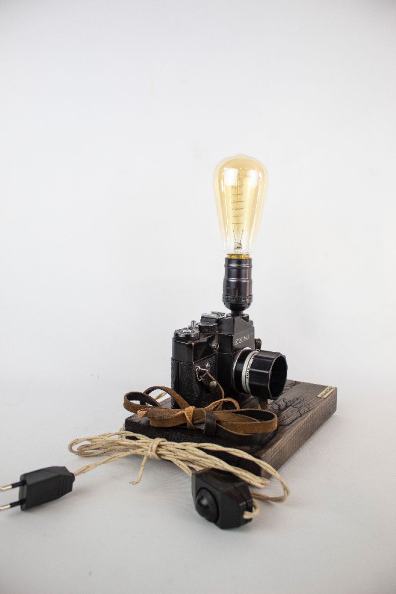 Ця лампа була створена під індивідуальне замовлення. Ми не можемо гарантувати, відтворення, точно такої же настільної лампи. Це залежить від того, який фотоапарат і шия будуть в наявності, на момент замовлення. Але Ви можете розглядати її, як приклад, для аналогічних проектів і ми створимо щось схоже і для Вас.