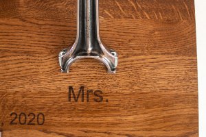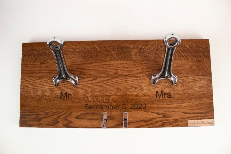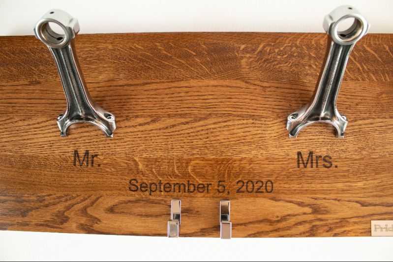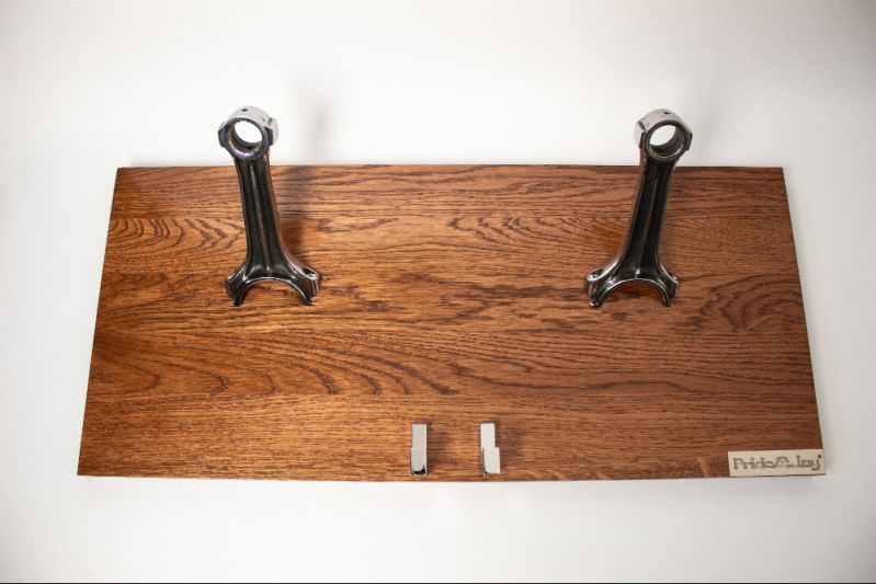 Настінне кріплення, ручної роботи, для авто / мото шолому Pride&Joy, з дерева, металу та авто-запчастин.