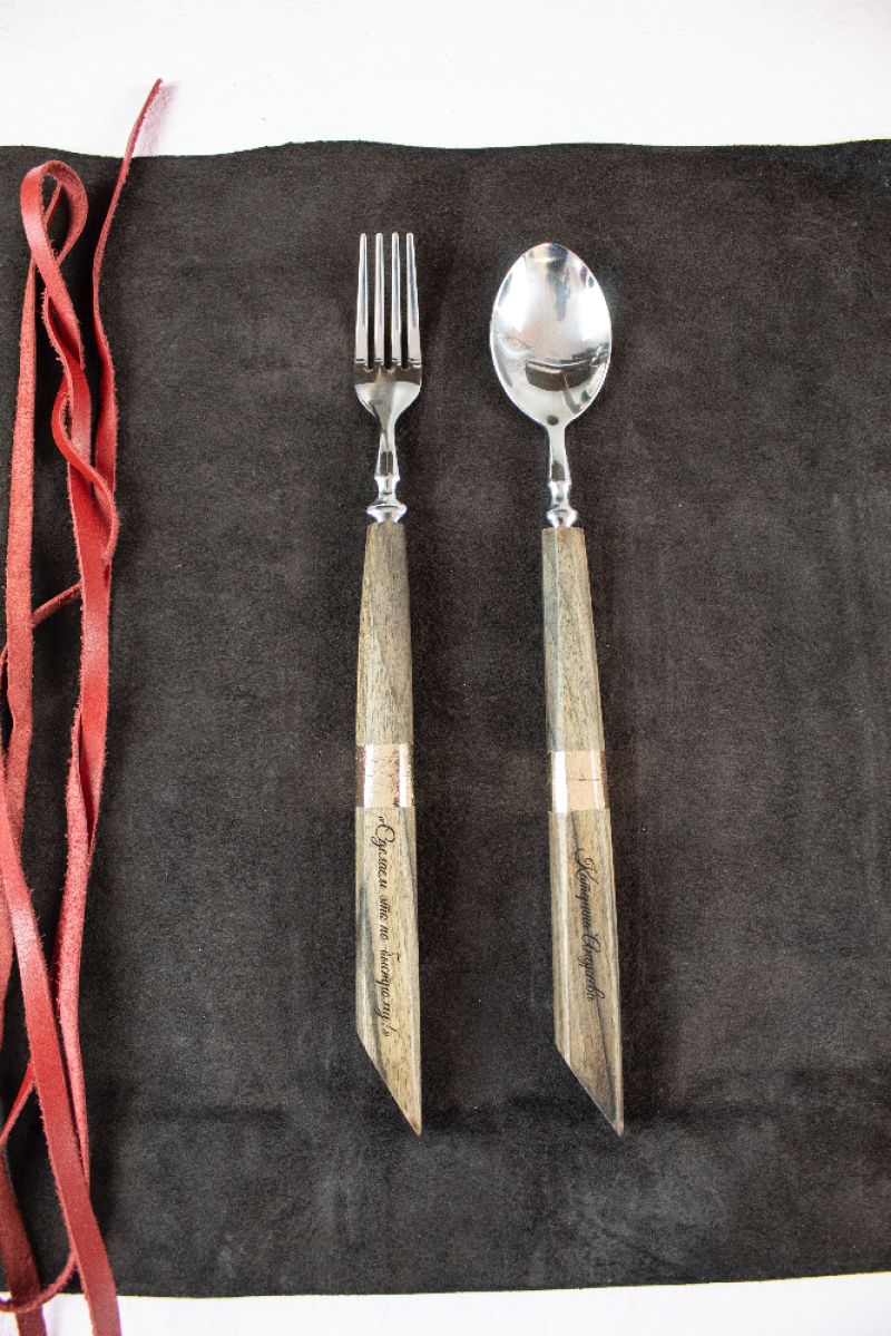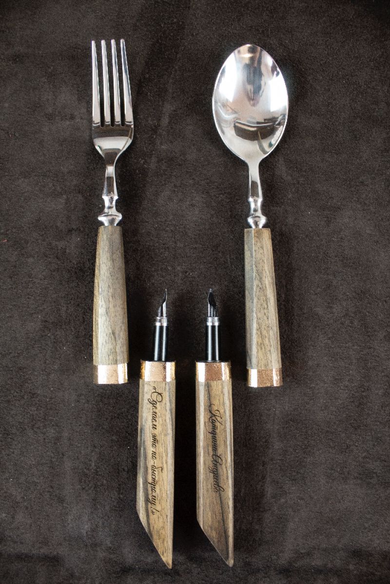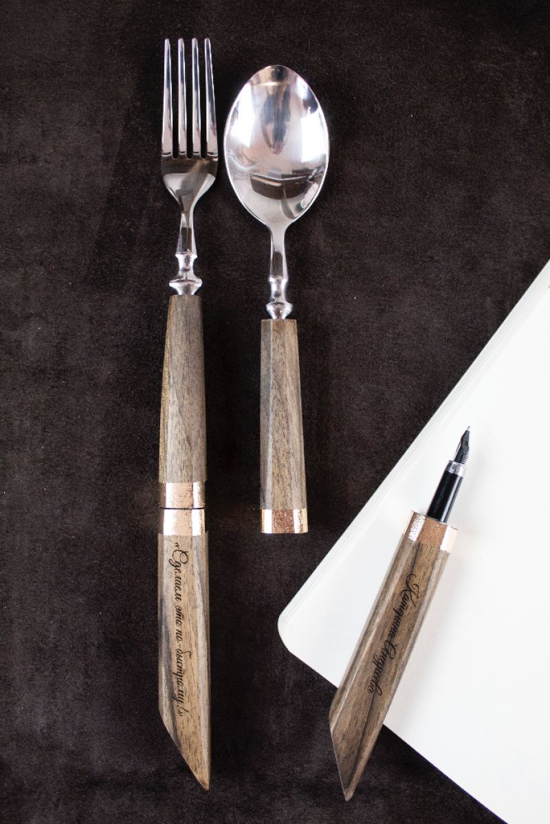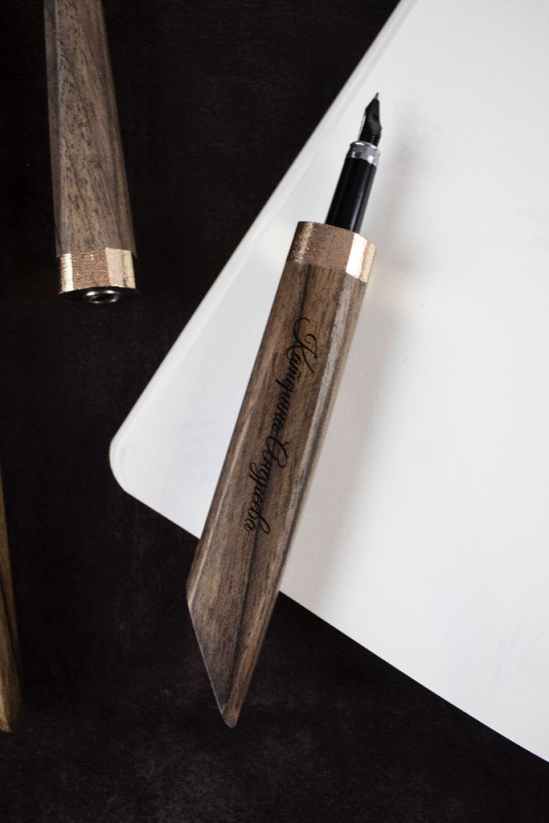 Подарунковий набір ручок Pride&Joy Сhef виконаний із натурального дерева (мореного горіха) та пір'яних чернильних ручок. Деревина оздоблена золотою поталью та персоналізованим гравіюванням. В набір входить чохол із натуральної шкіри.
