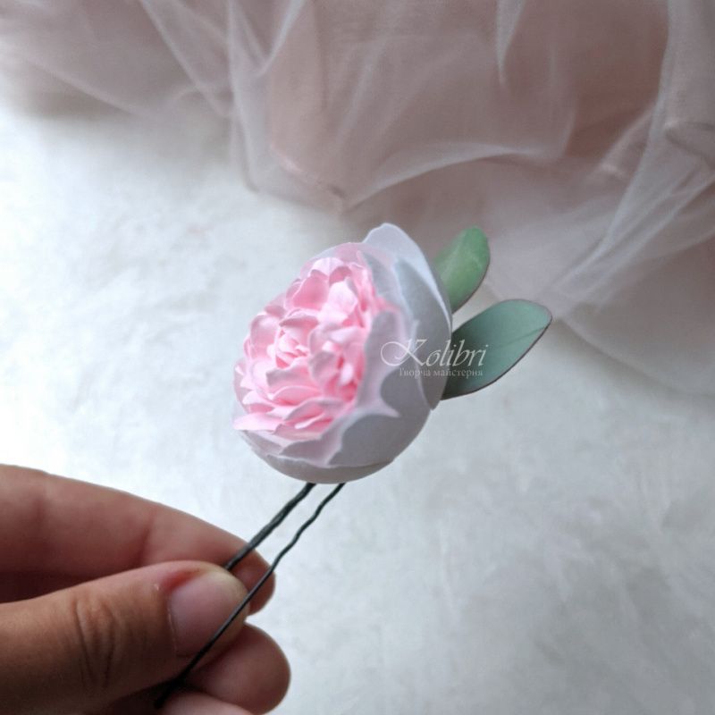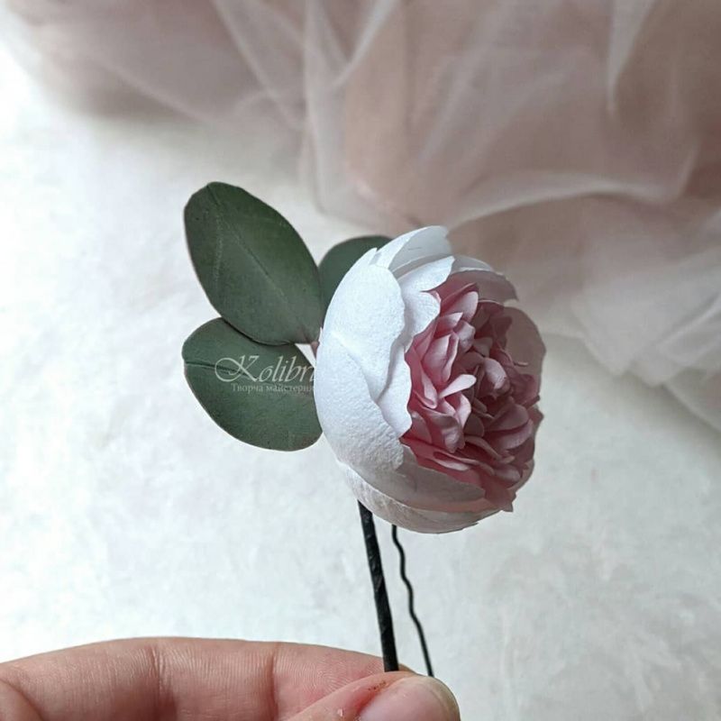 Півонія і евкаліпт буде вигідно виглядати у Вашій зачісці. Гра кольору і відтінків робить цей аксесуар неповторним. В наявності! Основа на вибір (шпилька, гумка, гребінь, брошка, пов'язка) Діаметр квітки 4,5 см Матеріал фоаміран не боїться вологи, падінь, легкий, приємний на дотик Відправляю НП / УП / Justin після повної оплати Роблю індивідуальні замовлення після передоплати 50%