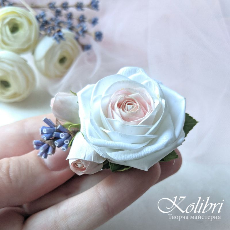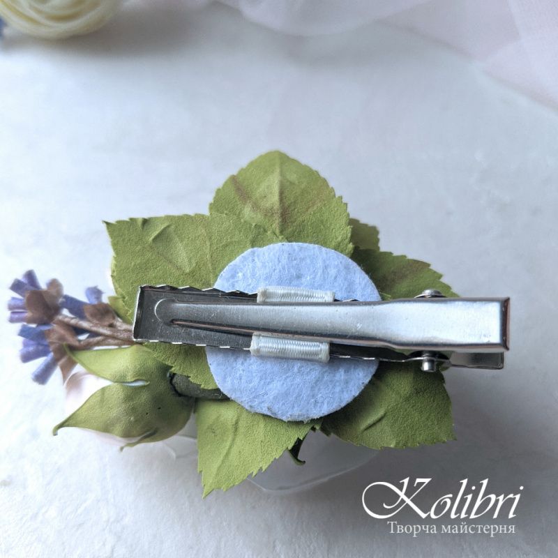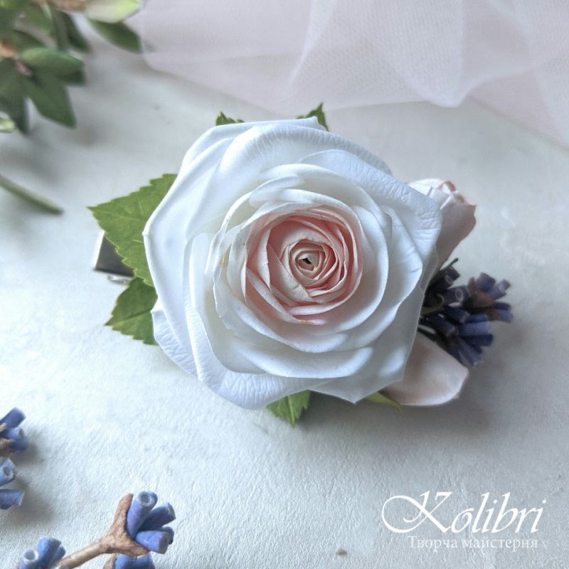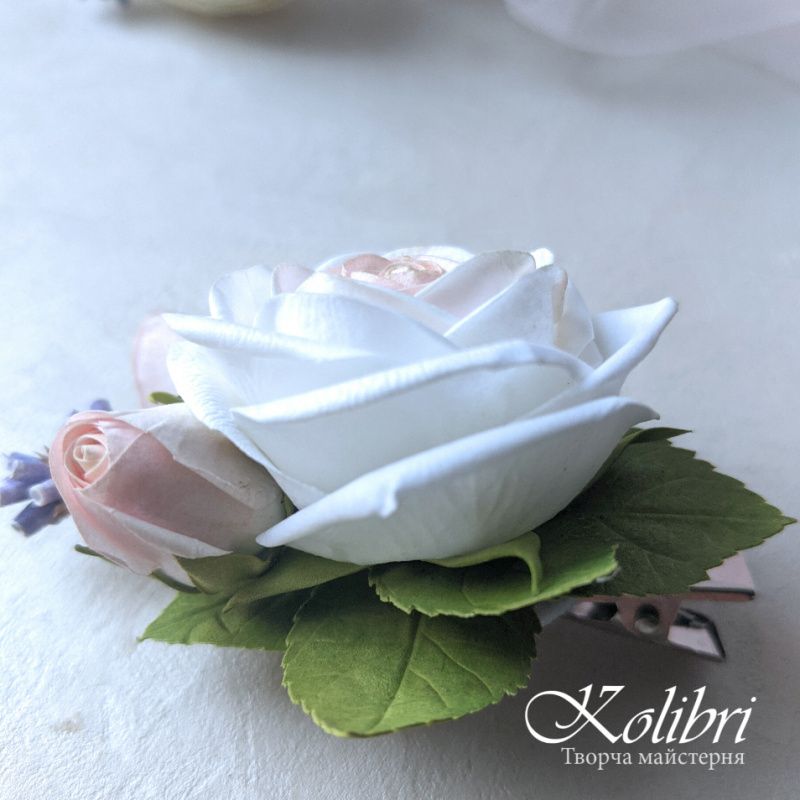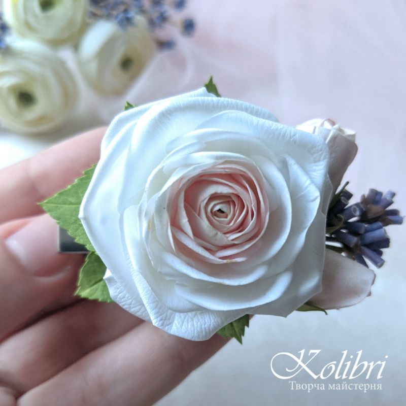 Маленька композиція з трояндою та лавандою з фоамірану- ідеальне доповнення зачіски. Робота повністю виконана вручну.
