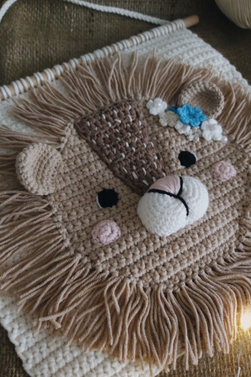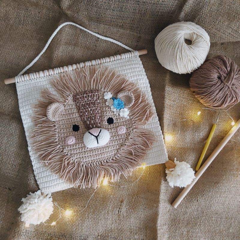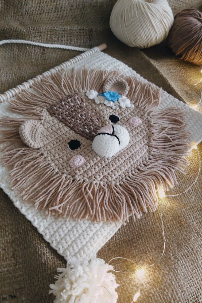 Стильне вязане настінне панно для дитячої кімнати Левеня.
