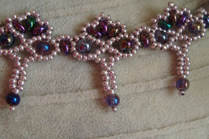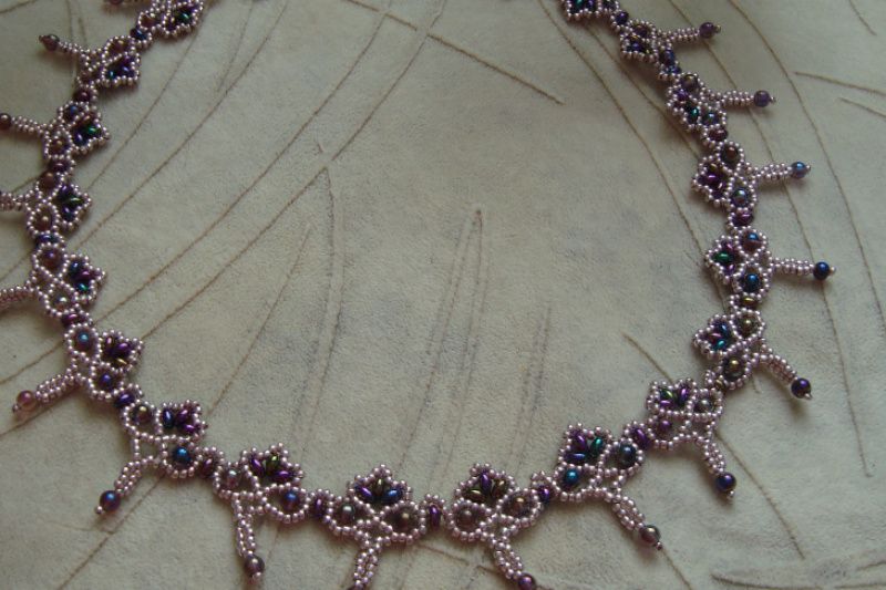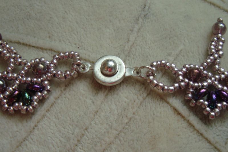 Кольє виконане з металізованого чеського бісеру, намистин супердуо бензинового кольору та намистин такого ж кольору, застібка - кнопка