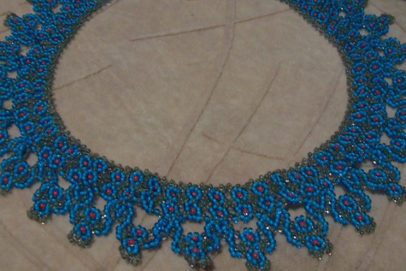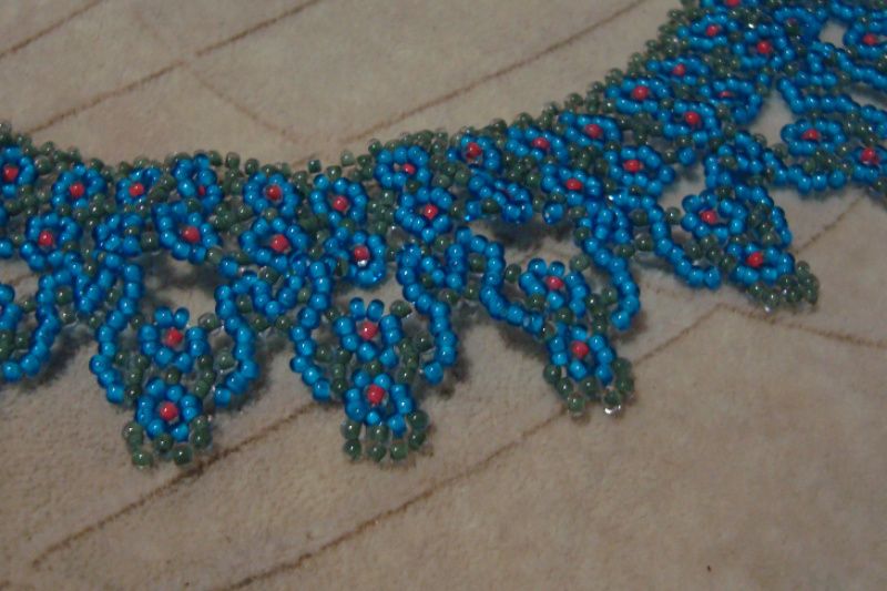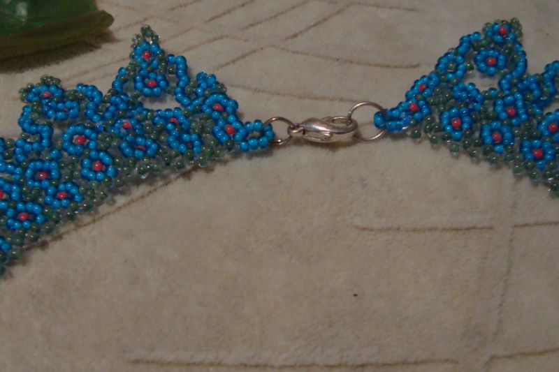Ажурне кольє із чеського бісеру з квітковим принтом, застібка карабін.