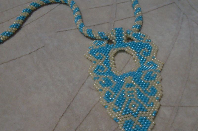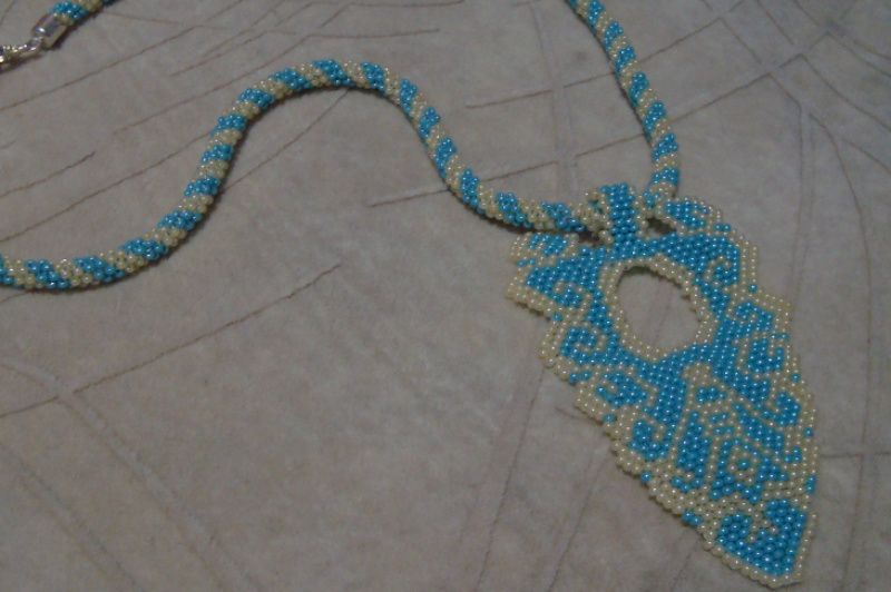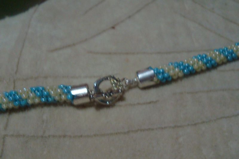 На бісерному джгутику - підвіска з бісеру, виконано з двох відтінків чеського бісеру, застібка - маленький металевий тогл.