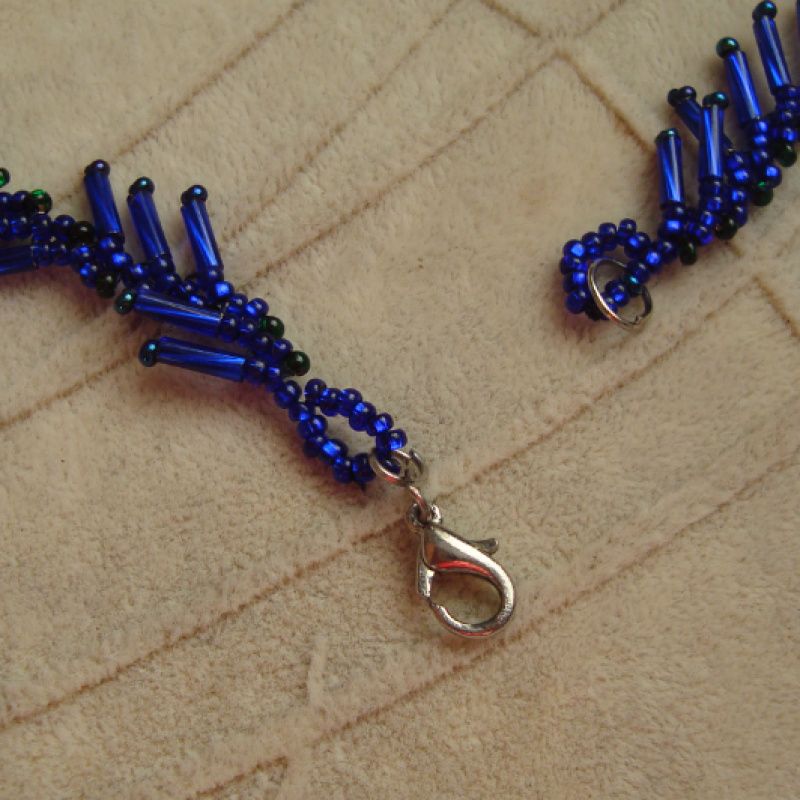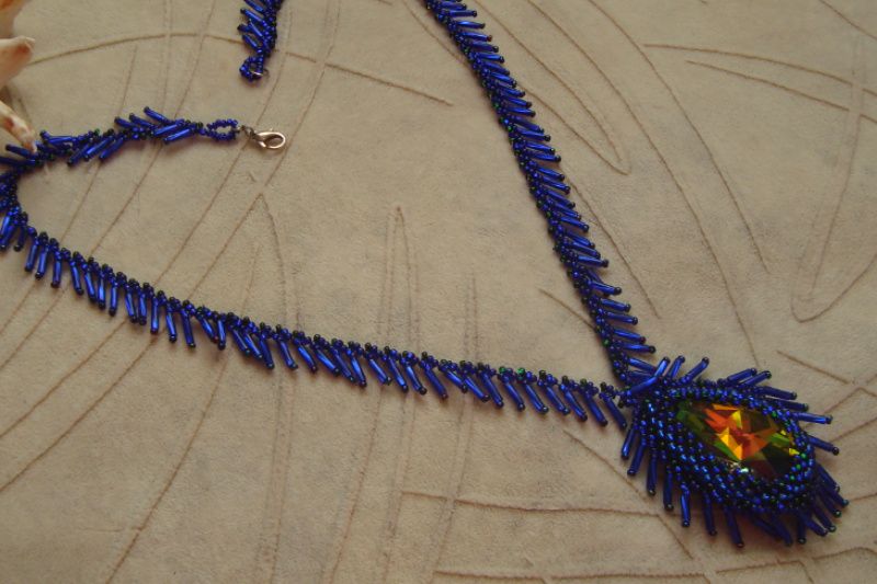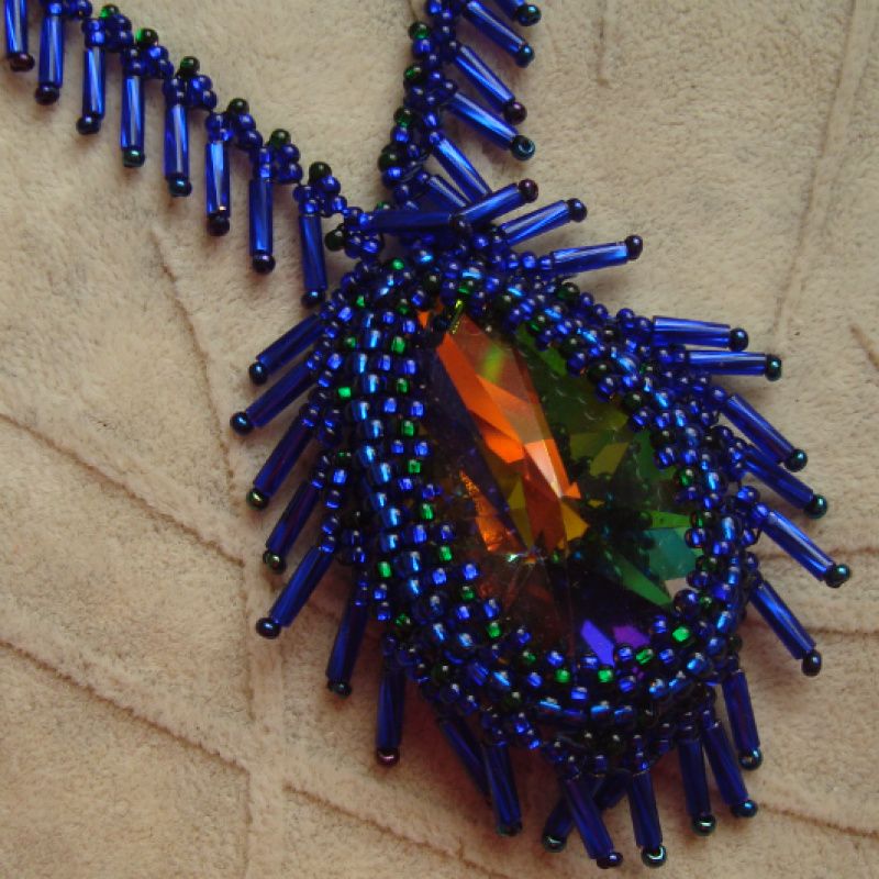 Кольє з чеського бісеру та стекляруса з великим кулоном-підвіскою, обшитим бісером