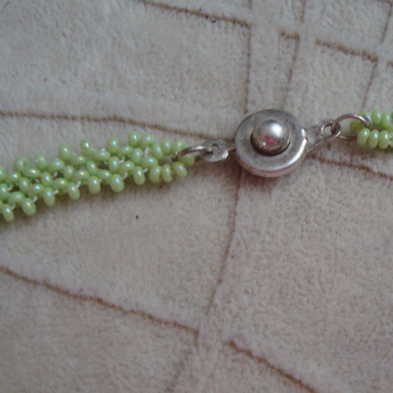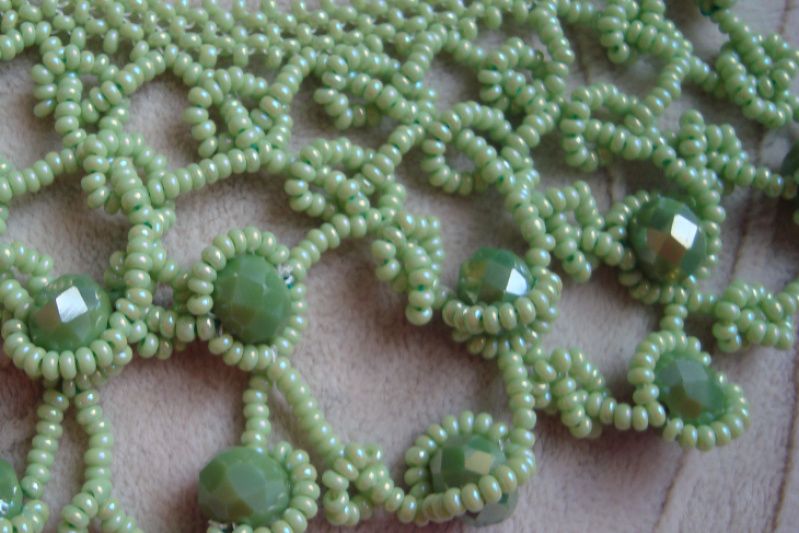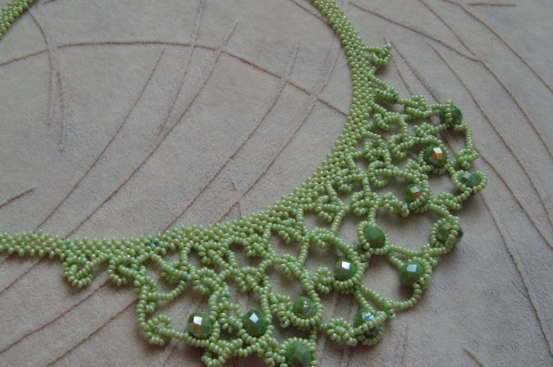 Кольє виконане з чеського бісеру та намистин у техніці плетіння макраме, застібка-кнопка