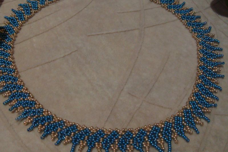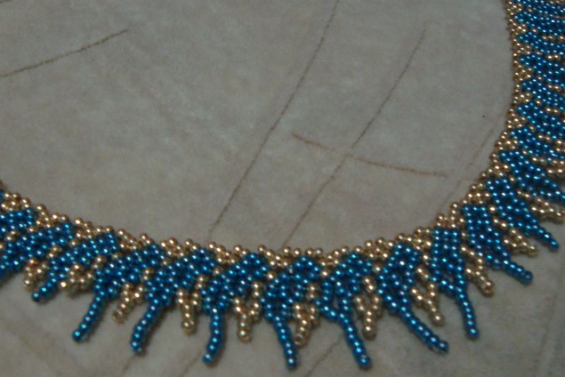 Ніжне кольє з металізованого чеського бісеру із застібкою карабіном