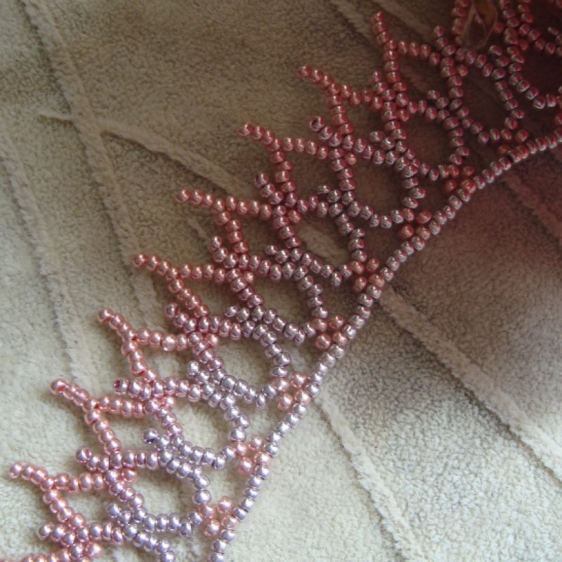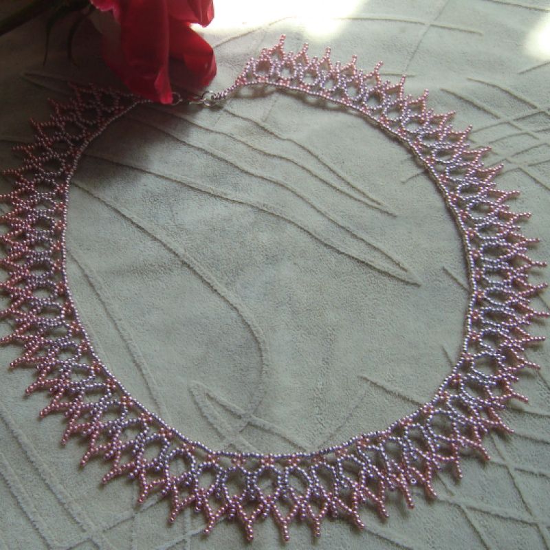 Кольє - опліч виготовлено з чеського металізованого бісеру з градієнтним переходом кольору. Довжина горловини 49 см + замочок - карабін срібного кольору 1,5 см