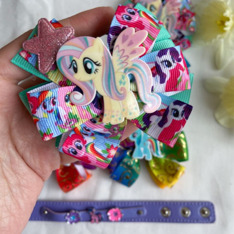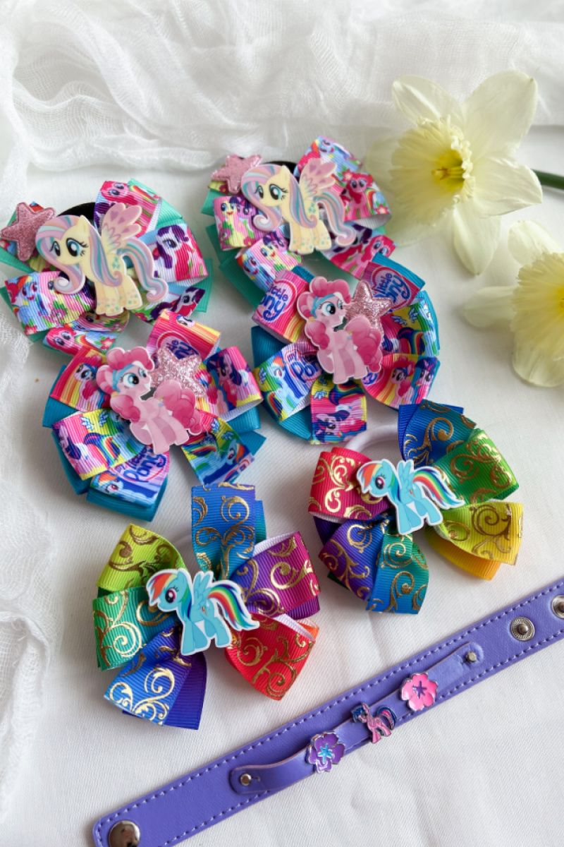 Неймовірний наборчик з резиночок зроблять щасливу Вашу дівчинку. Бантики зроблені з репсових стрічок.Мають два слої,кріпляться на резинку. Прикрашені акриловими планерами і різним декором. В коплект входить браслет.Ціна вказана за набір. Розмір бантика 7см.