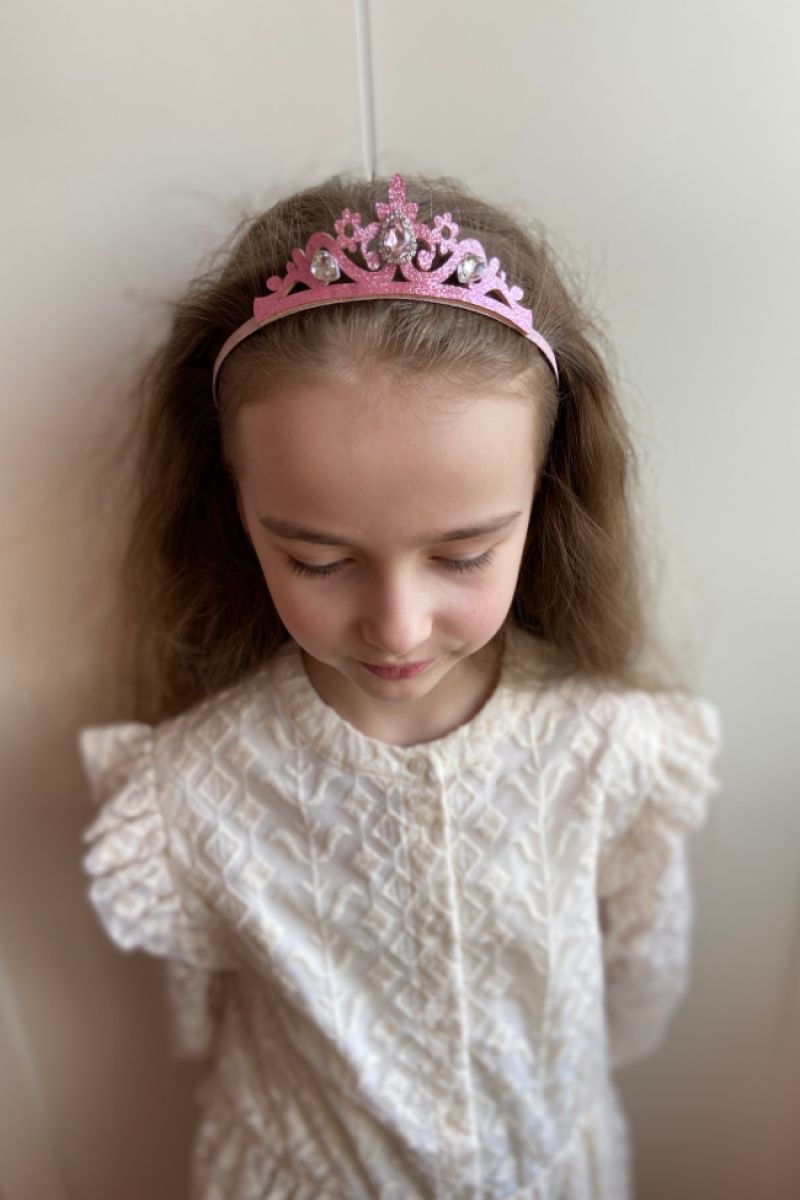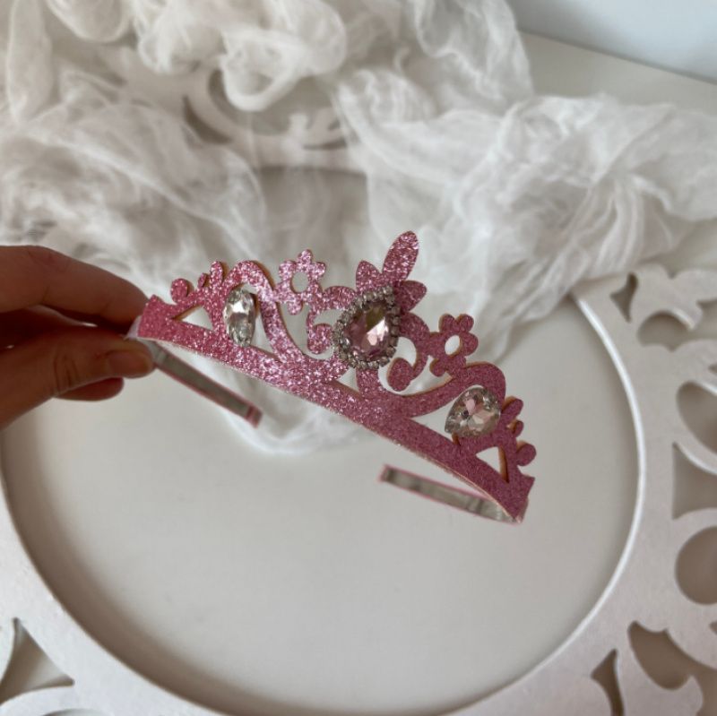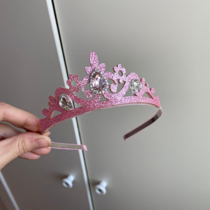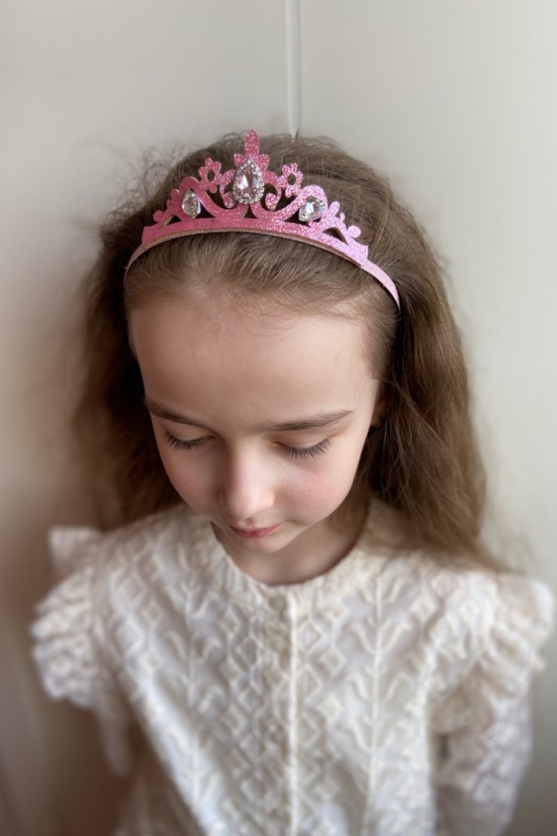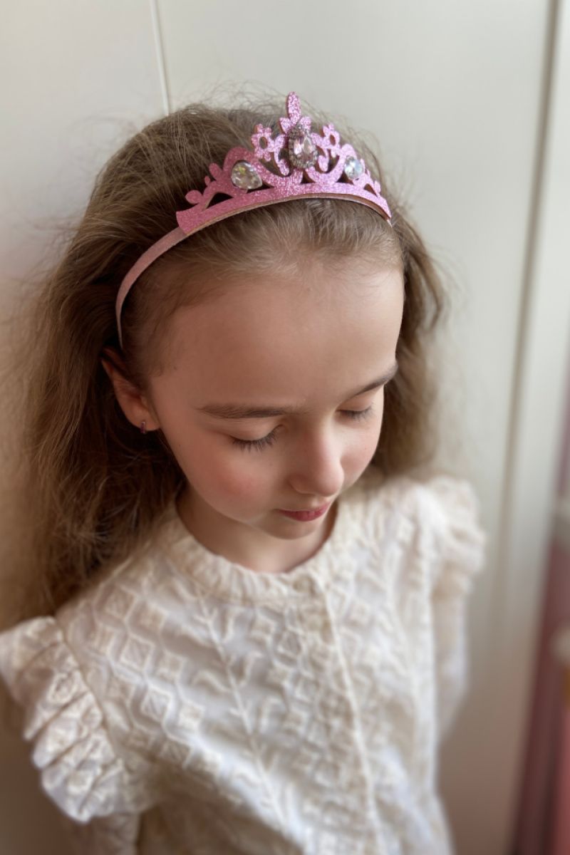 Корона для справжньої принцеси. Корона зроблена з глітерної екошкіри. Прикрашеня скляними стразами,які гарно виблискують на сонці. Основа обруч металевий обтягнутий тканиною.