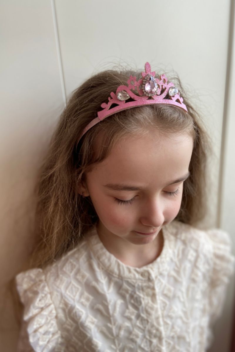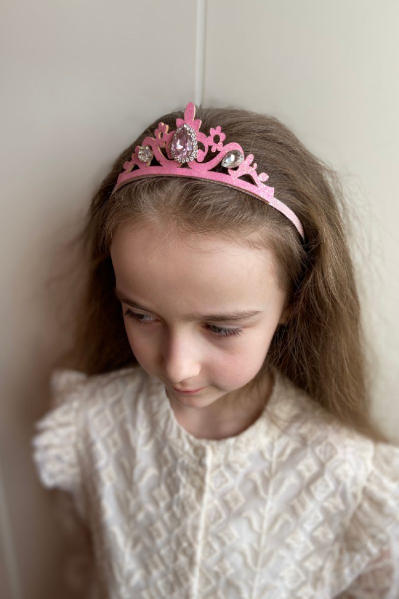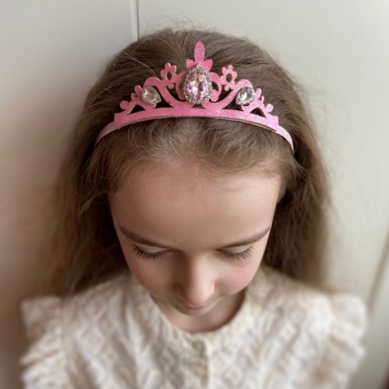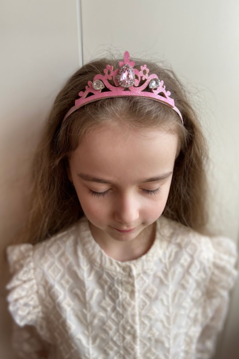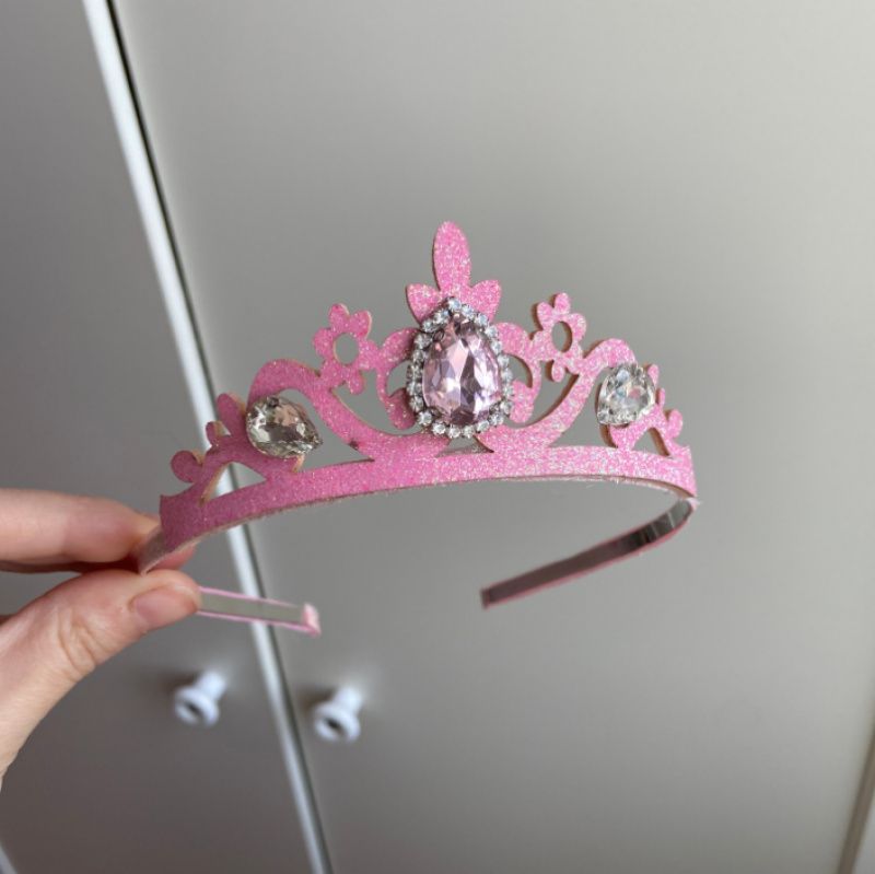 Корона для справжньої принцеси. Корона зроблена з глітерної екошкіри. Прикрашеня скляними стразами,які гарно виблискують на сонці. Основа обруч металевий обтягнутий тканиною.