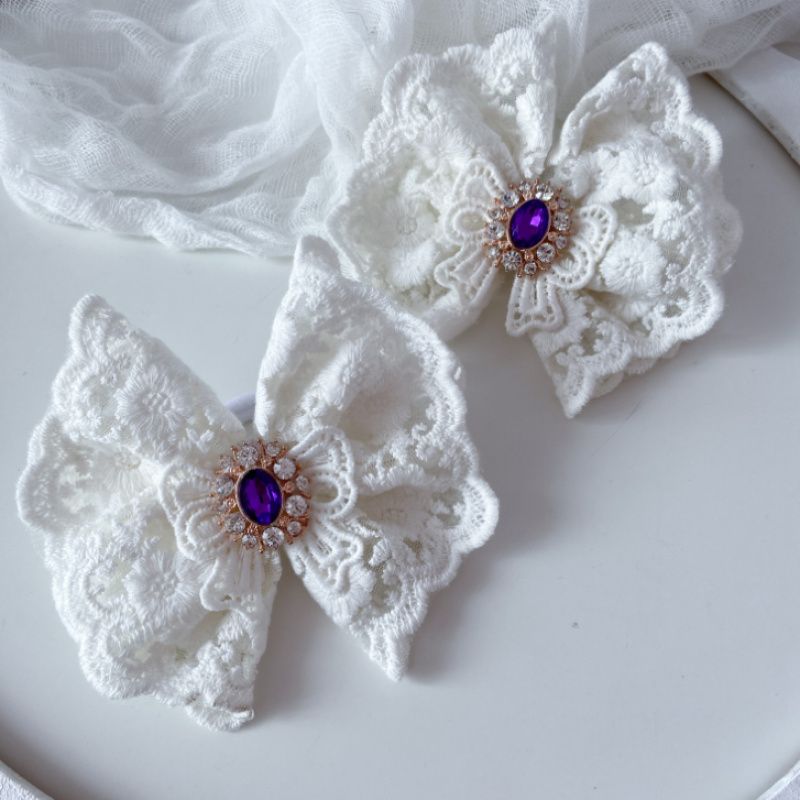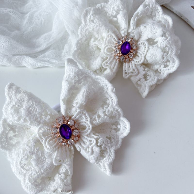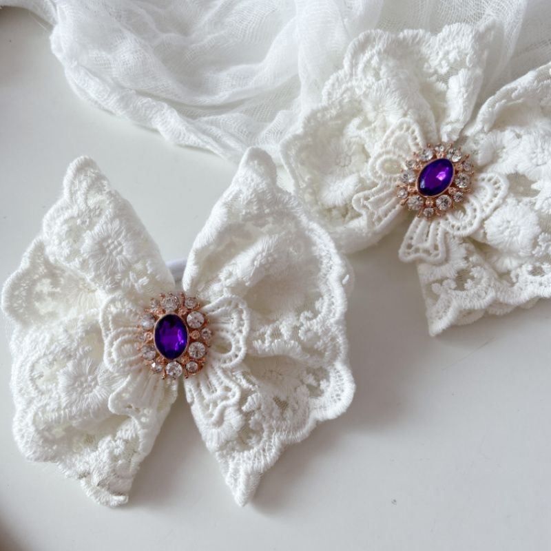 Неймовірні бантики зроблені з двохслоїв мережива. Основа резинка. Оздоблені стразовою серединку та стрічкою. Ціна за пару.Розмір 12 см