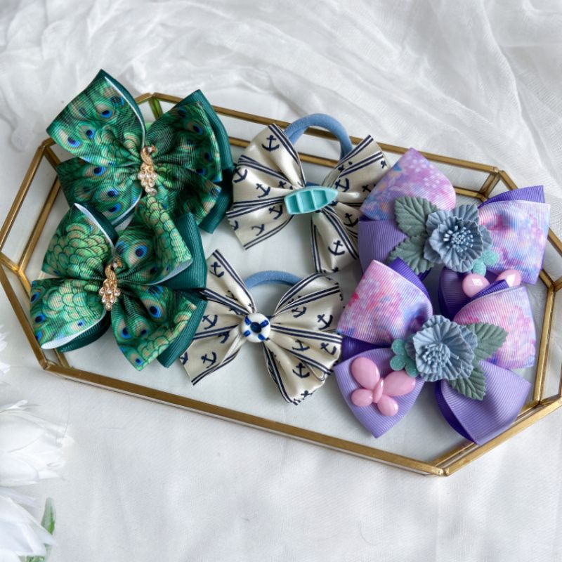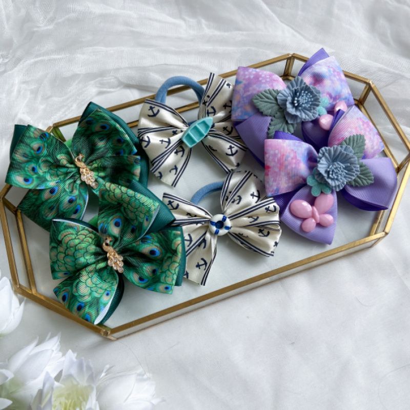 Неймовірний наборчик з резиночок зроблять щасливу Вашу дівчинку. Бантики зроблені з репсових стрічок.Мають два слої,кріпляться на резинку. Прикрашені акриловими планерами і різним декором. Ціна вказана за набір. Розмір бантика 9 см.