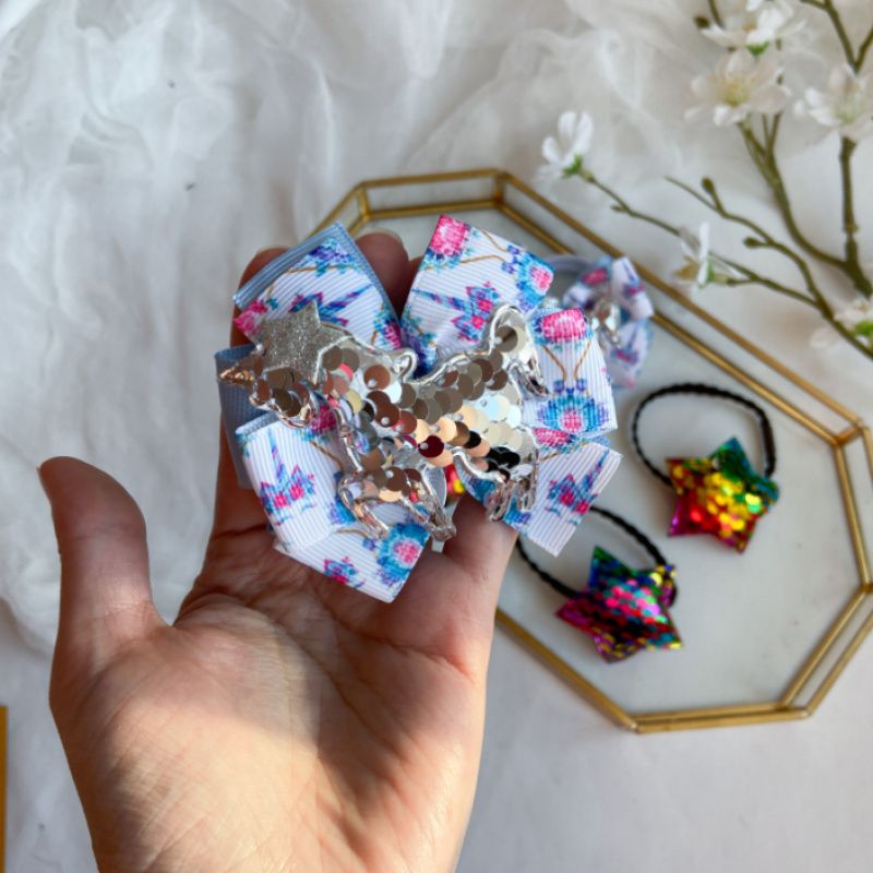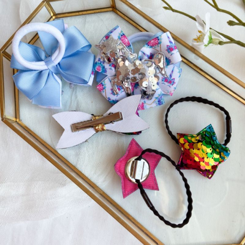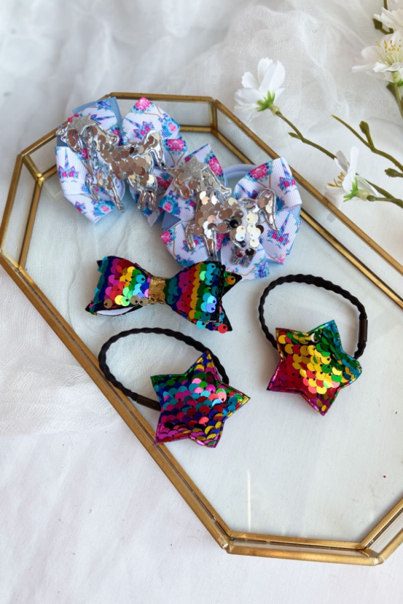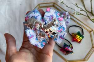 Оригінальний набір в одному екзеплярі. Бантики-стрічка репс йде два слої на резинці,єлиноріг перевертиш-резинки.