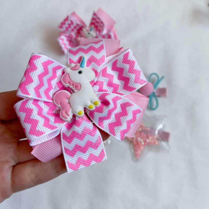 Оригінальний набір в одному екзеплярі. Бантики-стрічка репс йде два слої на резинці,єлиноріг резина пришиті до бантика-резинки.