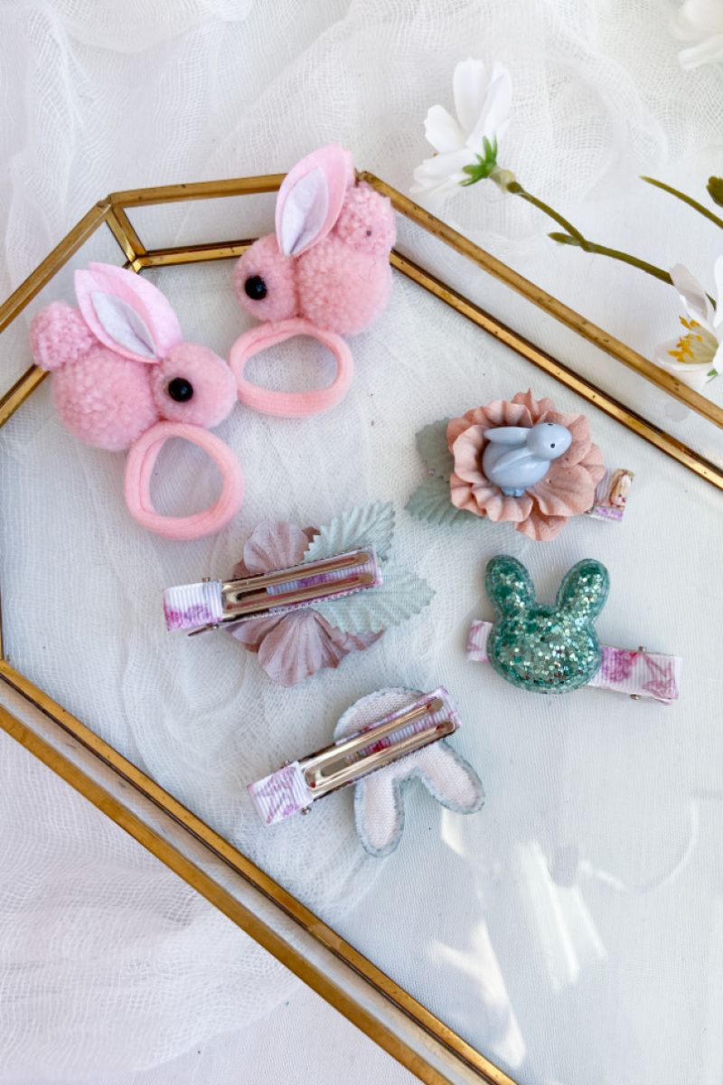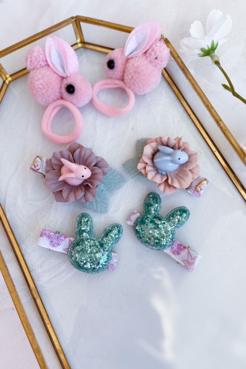 Оригінальний набір в одному екзеплярі.Остані заколки зайчик зроблений з блискучої екошкіри.