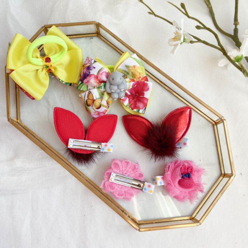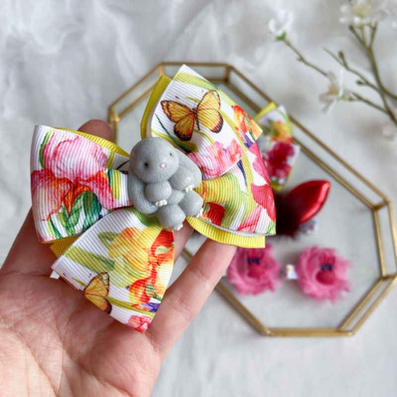 Оригінальний набір в одному екзеплярі. Бантики-стрічка репс йде два слої на резинці,зайчик акрил.