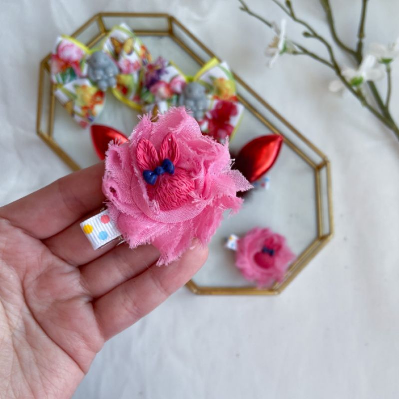 Останні заколки квіти -тканина,зайчик акрил-заколка. Ціна за набір