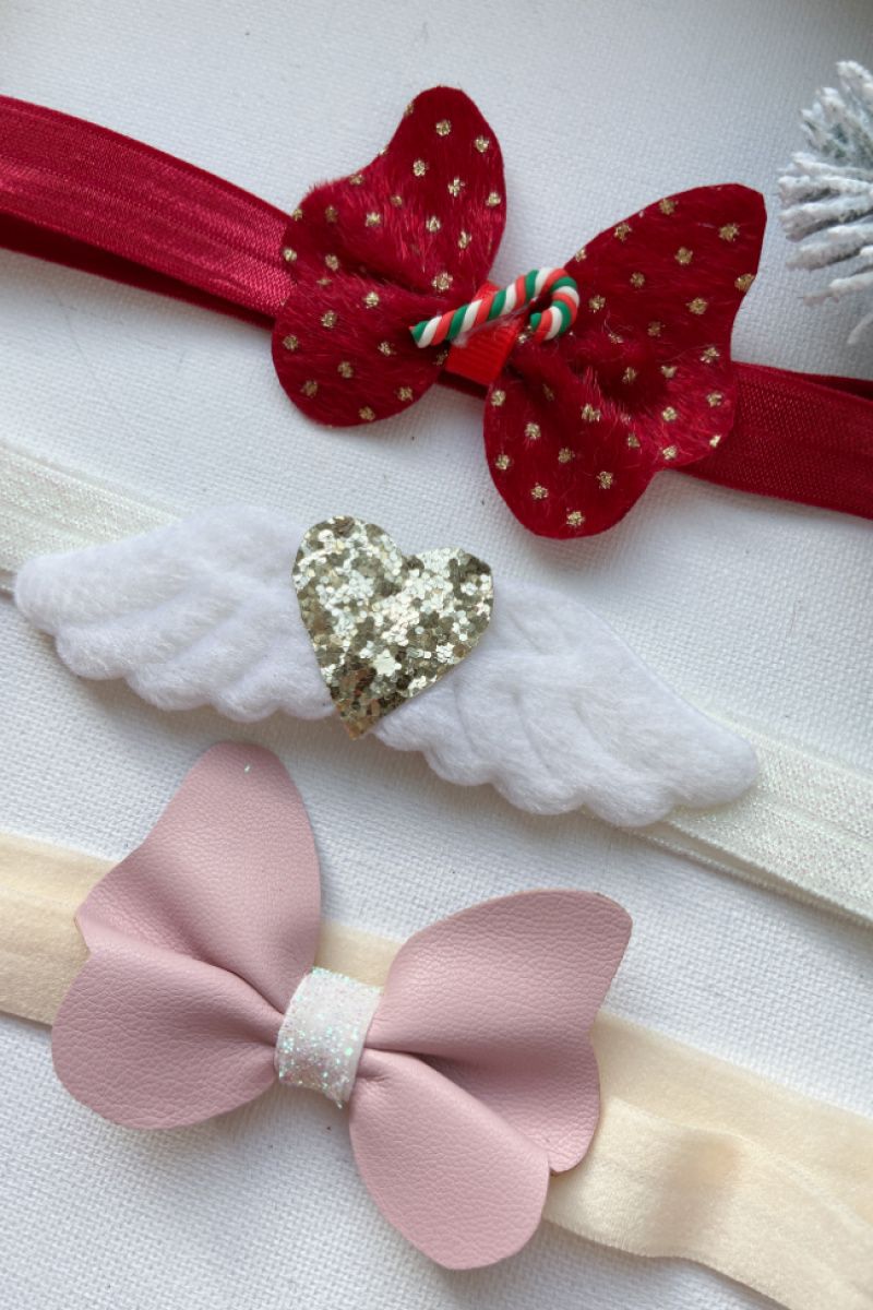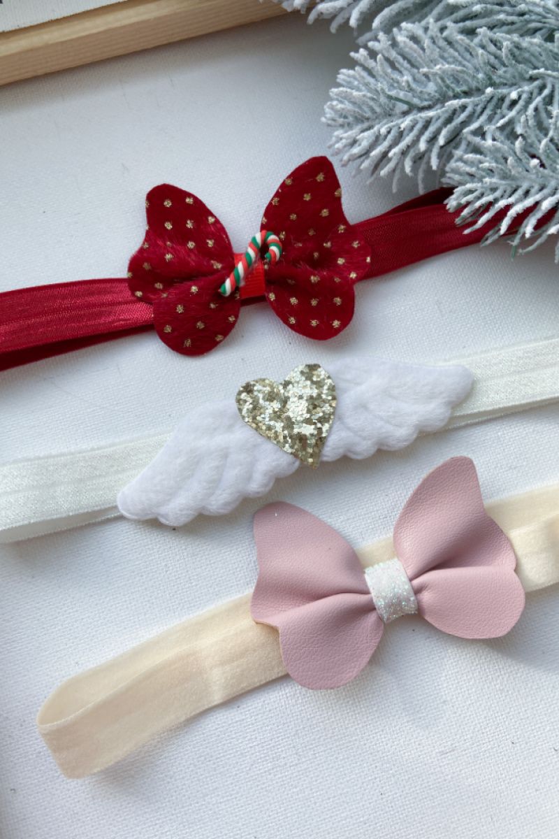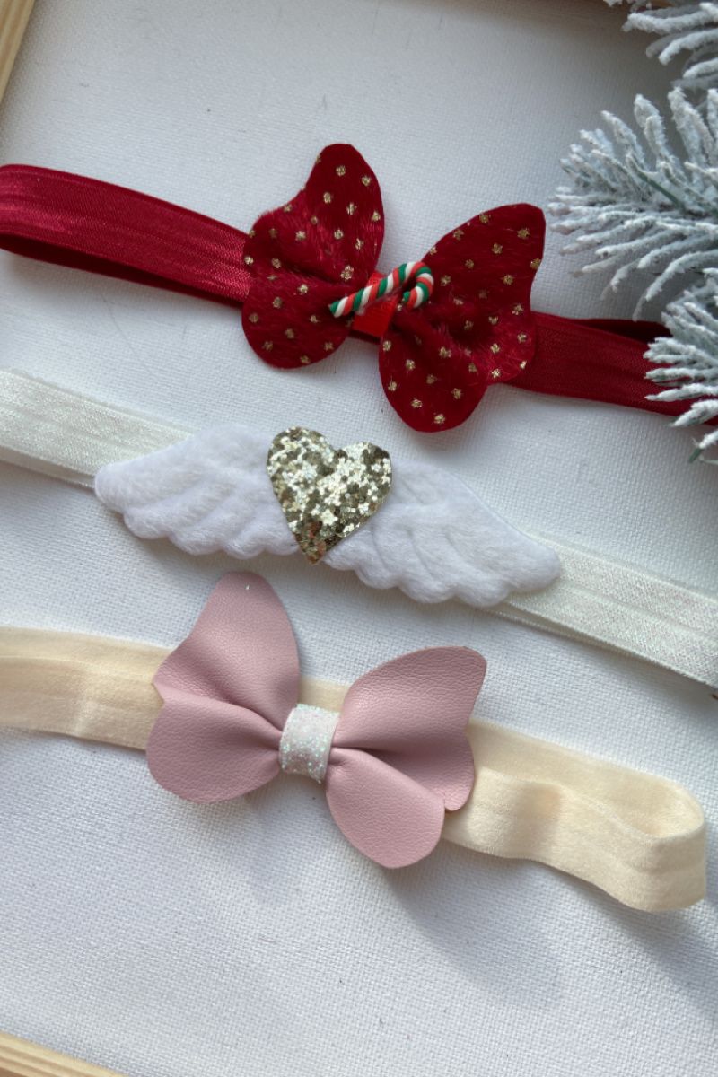 Неймовірний набір повязочок для красунні. Бантики зроблені з екошкіри, прикрашені декоративними елементами.Ціна за набір