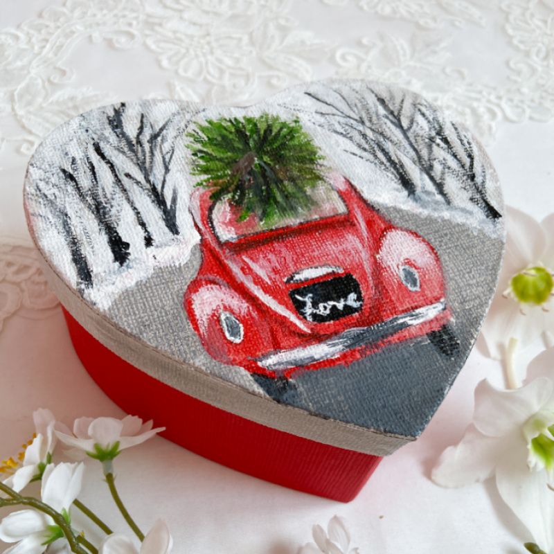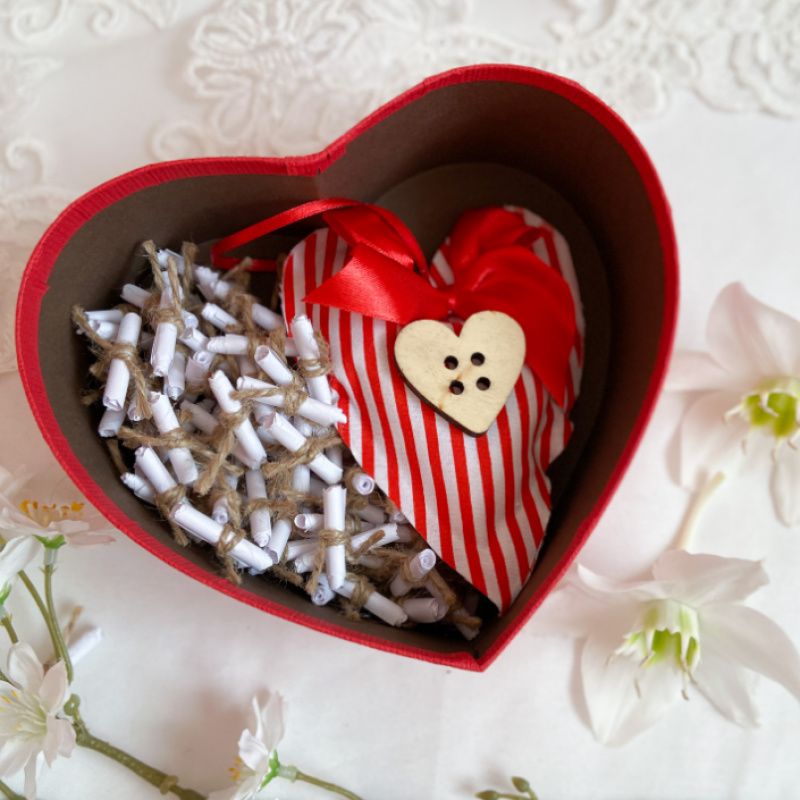 Коробочка валентинка- оригінальний і романтичний подарунок на день Валентина,день народження чи річницю.Коробочка зроблена з картону. Розмальована в ручну акриловими фарбами. Розмір 18,5х17х8см. В середині коробочки є записки 100 причин чому я тебе кохаю і сердечко валентинка. Сердечко пошите з американського котону. Маленьке сердечко вишите паєтками ,прикрашене оксамитовими сердечками, Подаріть коханій людині емоції.Вона буде вражена.Коробочку можна потім використовувати,як шкатулку для зберігання приємних спогодів. А сердечко можна декорувати кімнату,ялинку чи використати для романтичної фотосесії. Будьте коханими :).