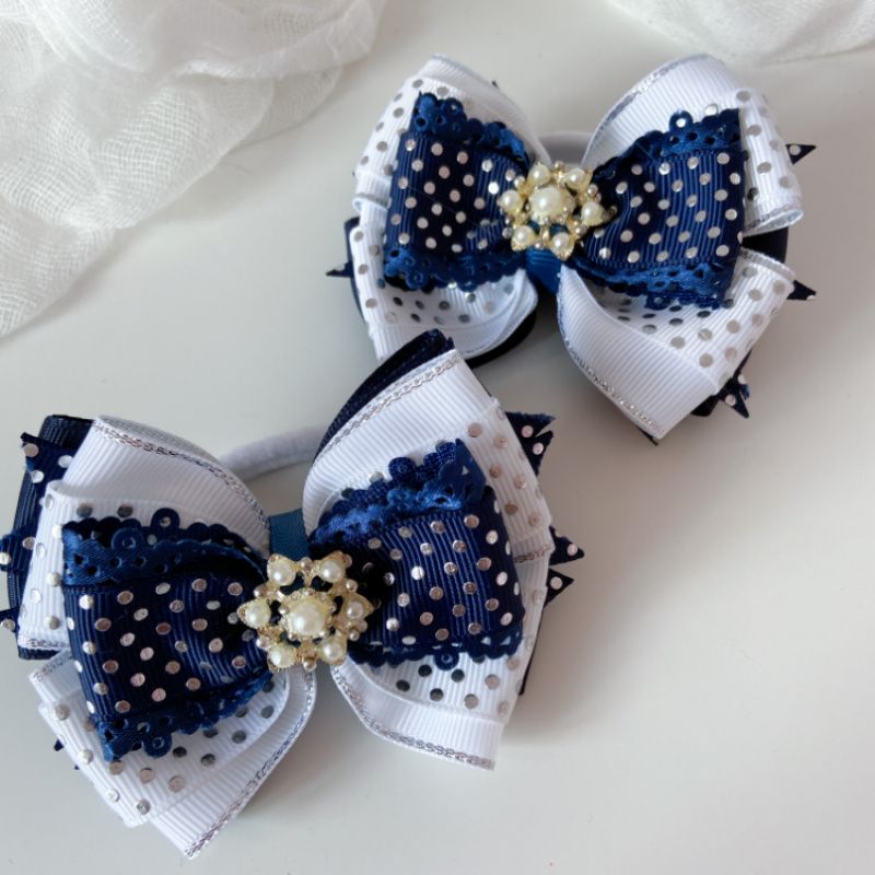 Стильний і оригінальний набір для школярки. . Зроблені з віп репсових стрічок та стразових серединок.Розмір 9 см.