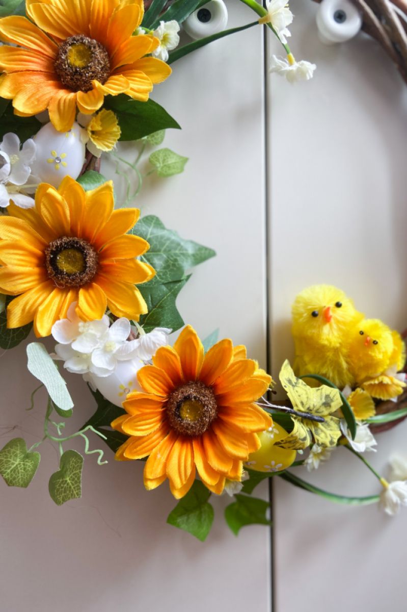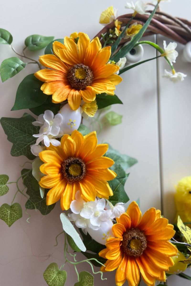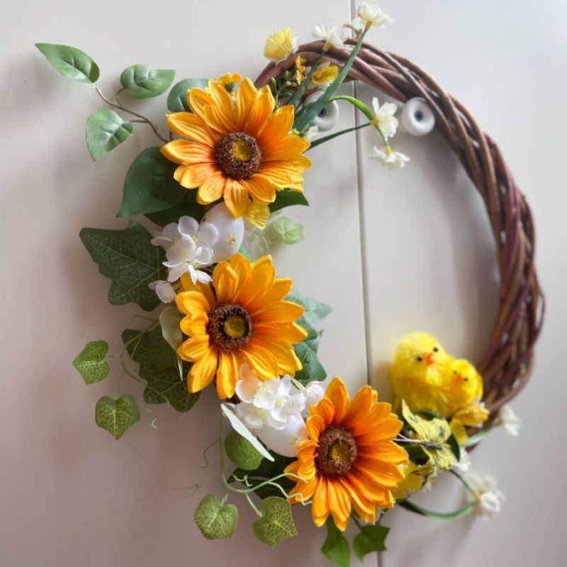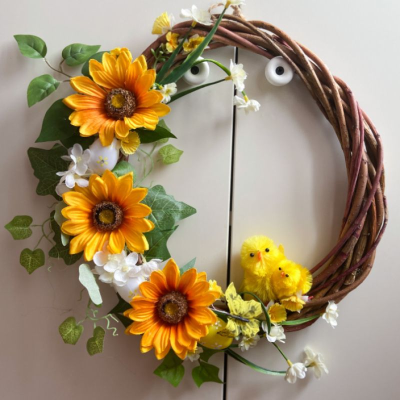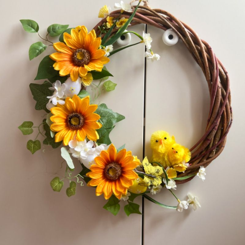 Цей пасхальний віночок прикрасить Ваші двері в домівку і створить світлий і святковий настрій. Основа сплетена із лози має розмір 35х34 см.