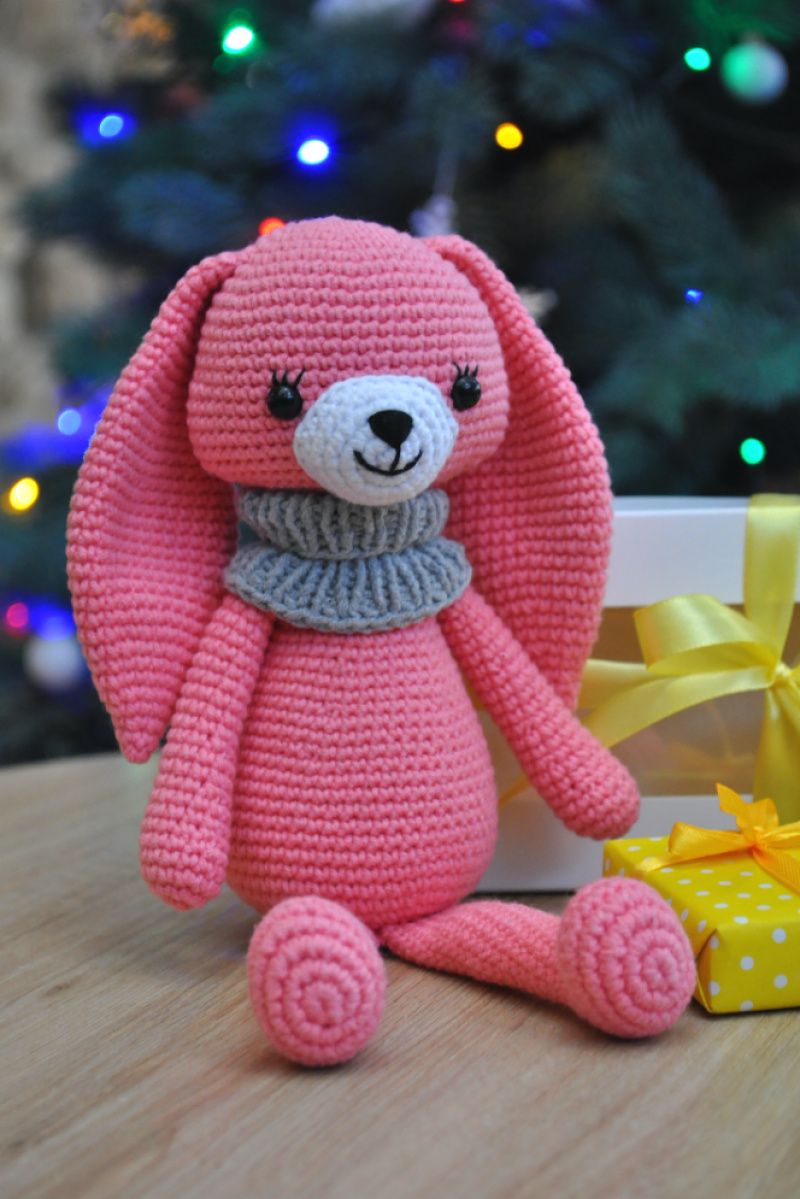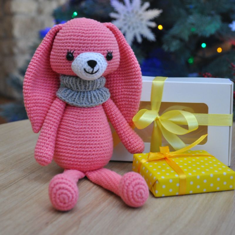 При в"язанні використовували напівбавовняну пряжу, всередині іграшки наповнювач холлофайбер, тому іграшка дуже приємна на дотик.