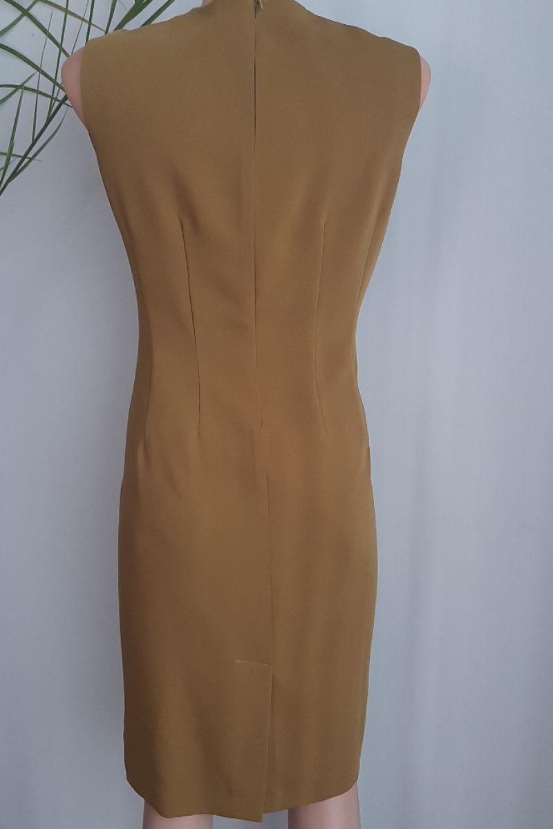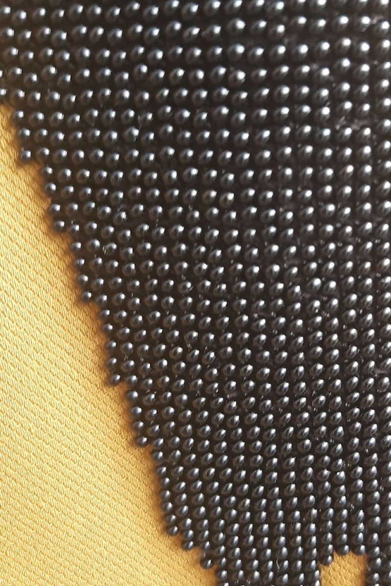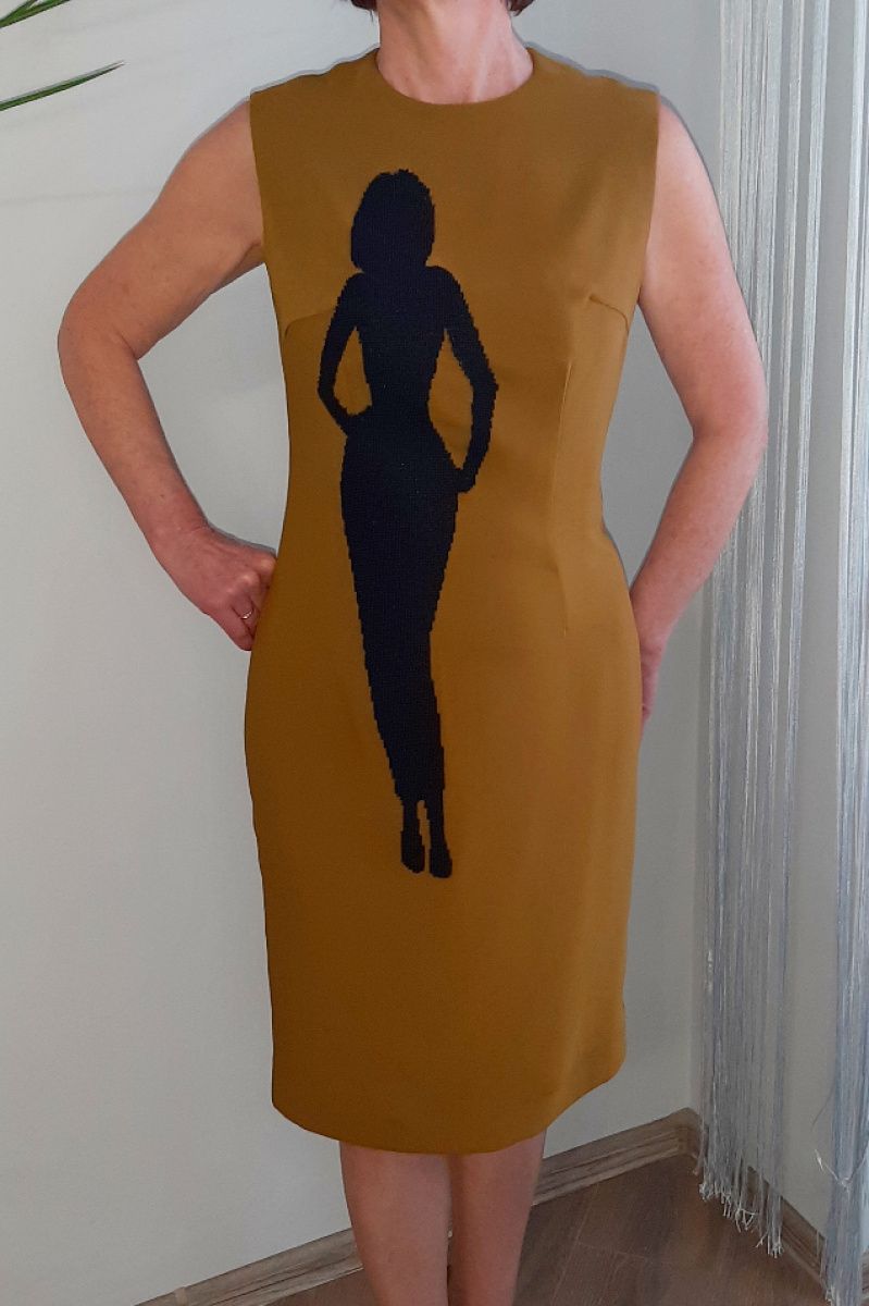 Неперевершена гірчичне плаття з ручною вишивкою бісером. Нажаль, фото не передає насичений гірчичний колір і м'якість тканини. Але, якщо Ви в цьому вбранні підете в ресторан, то компліменти почуєте не тільки від чоловіків. Така сукня, як то кажуть "на всі випадки в житті". Вишитий чорним бісером силует підкреслює витонченість фігури. Довжина виробу дозволяє відчувати себе комфортно в будь-якій ситуації. Авторська ручна вишивка, що прикрашає сукню, зробить Ваш образ неповторним. Відсутність вузликів і перетину нитки на виворітній стороні вишивки, говорить про високу якість роботи і високу ступінь кваліфікації майстра.