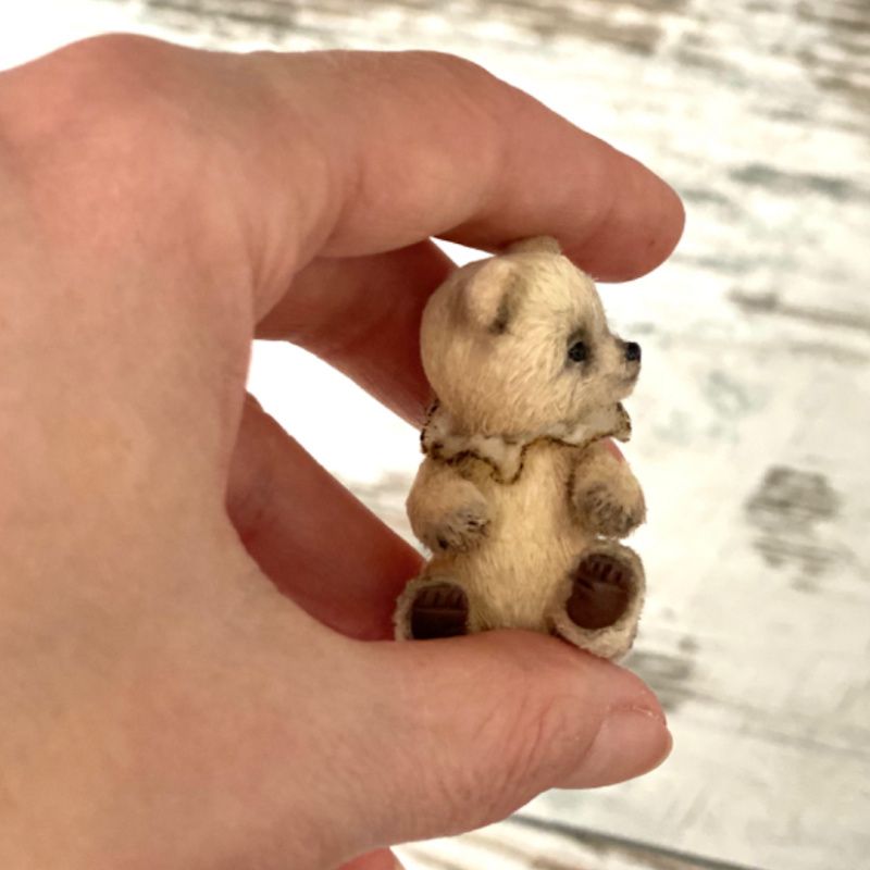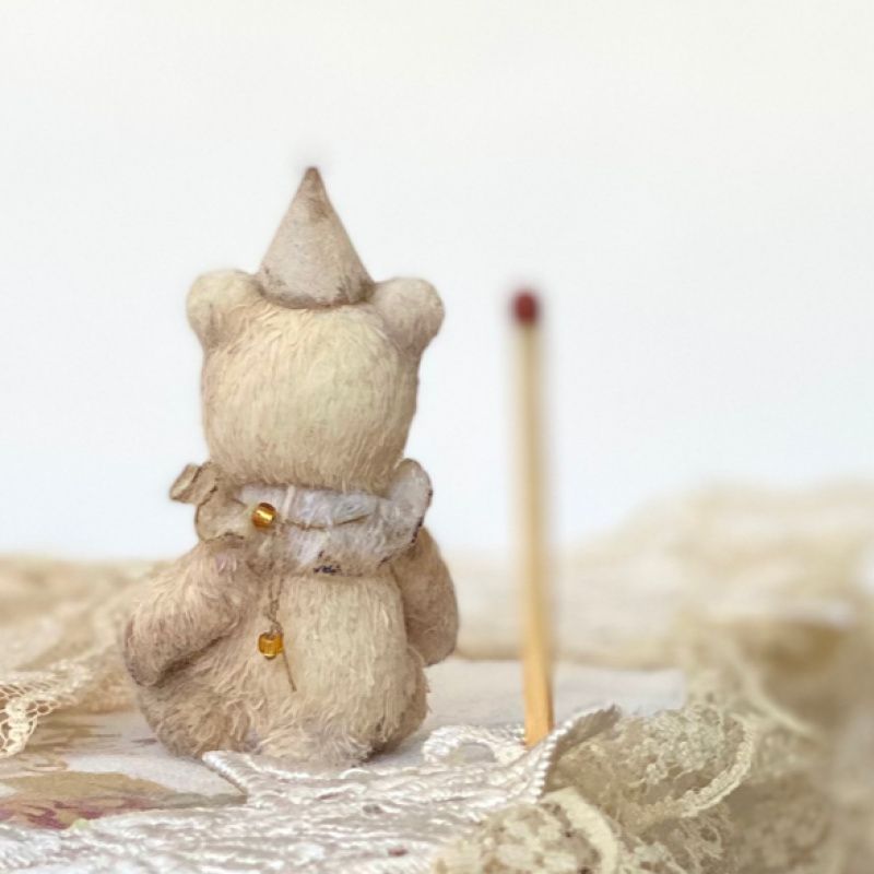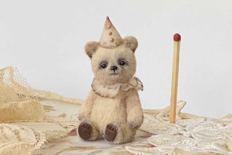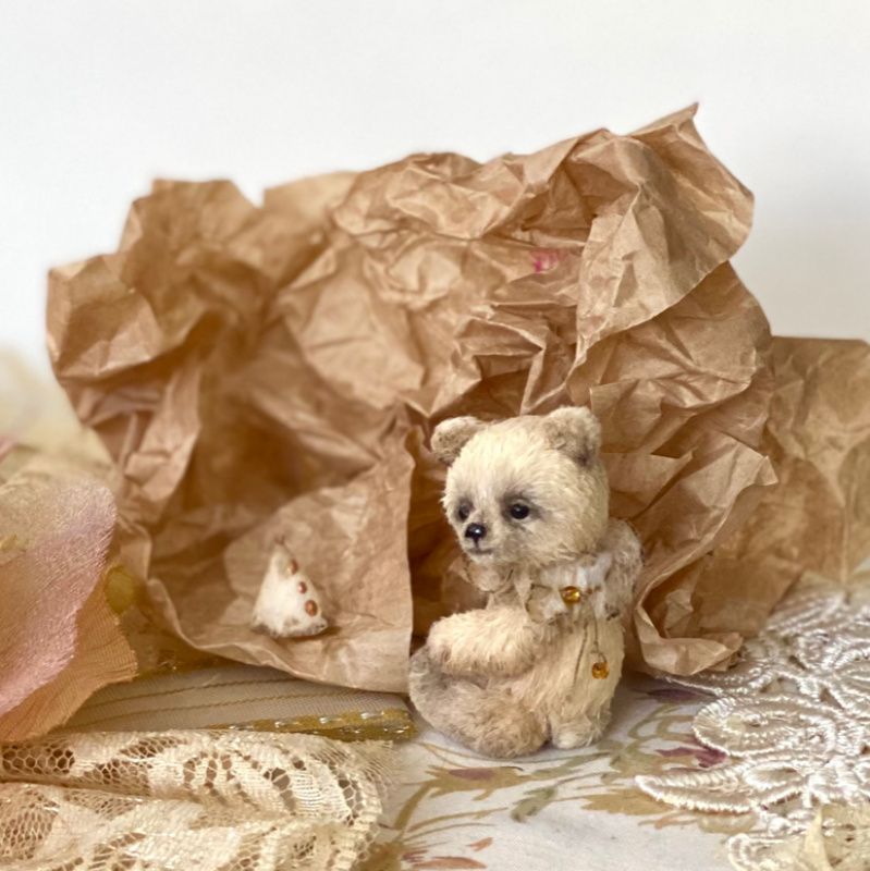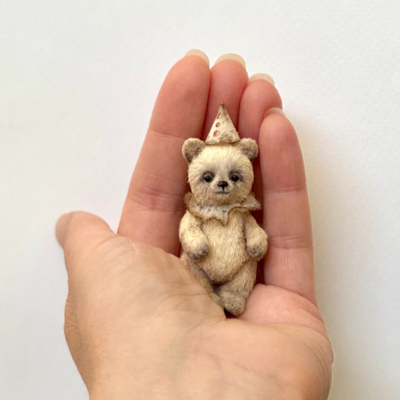 Інтер'єрна іграшка Ведмедик Тедді. Виконано в техніці мініатюрної Іграшки на основі в'язаних елементів. Зріст у малюка 5 см. Наповнений шерстю, тонований олійними фарбами. Має 5 кріплень: лапи, голова рухливі. Не є іграшкою для маленьких дітей.