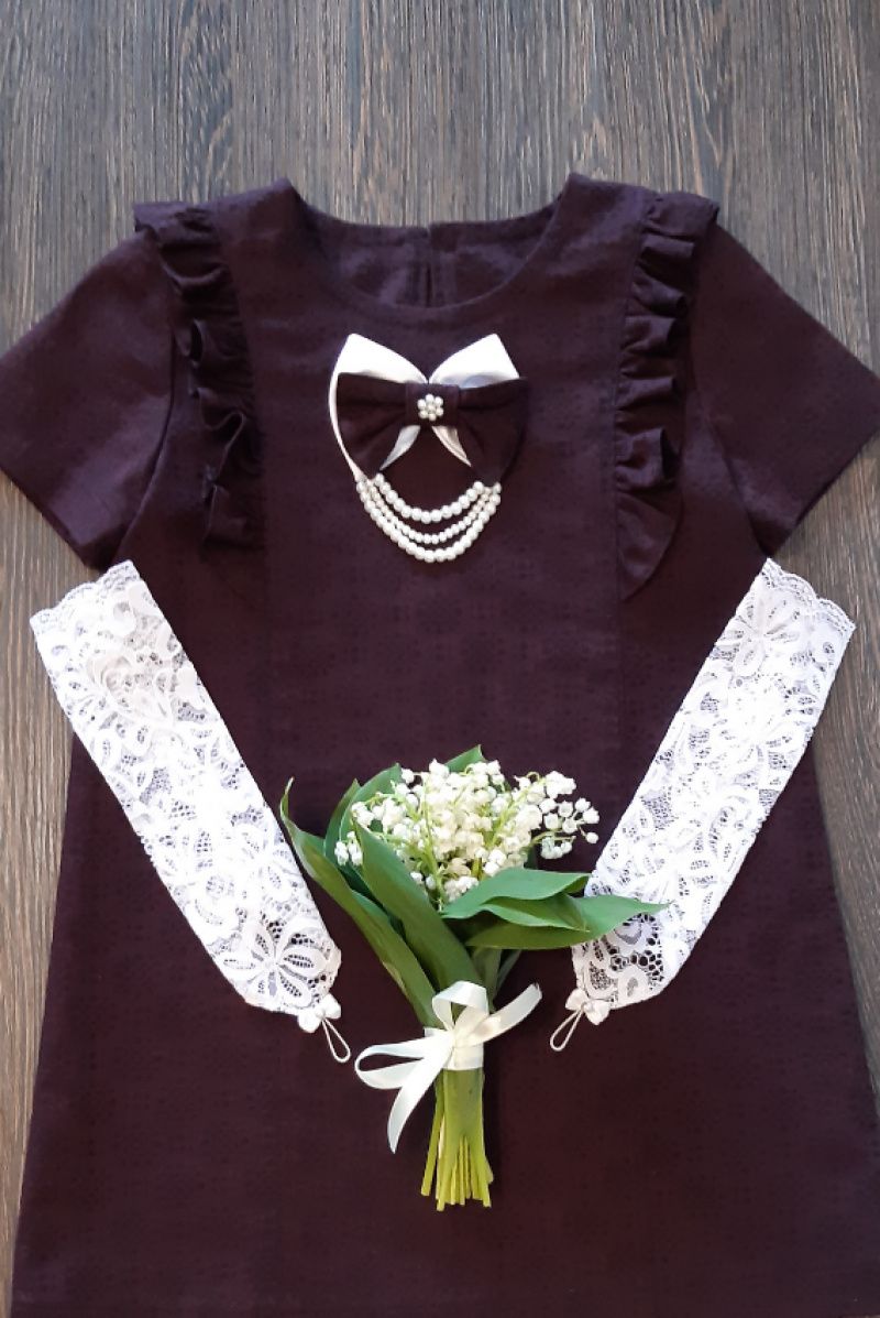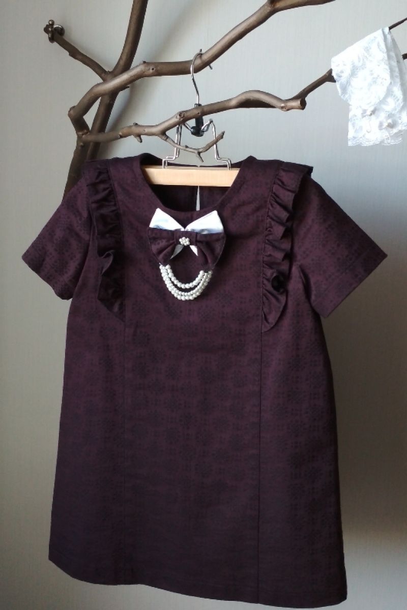 Куди ж без урочистих і щасливих подій в нашому житті! Сукня з бавовни з жакардовим малюнком дуже красивого винного відтінку з мереживними мітёнкамі -то що треба! Розмір 110.