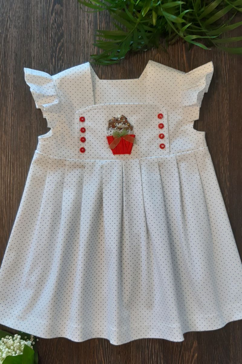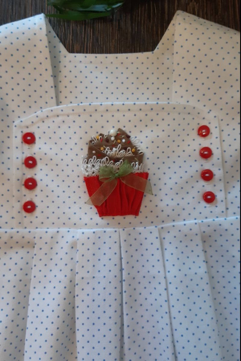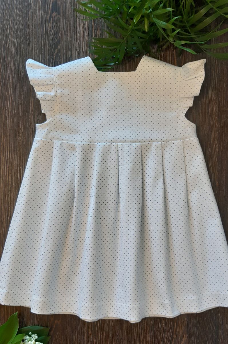 Ошатне плаття з тонкого котону в невеликий блакитний горошок з аплікацією. Розмір 98. Усі сукні в єдиному екземплярі.
